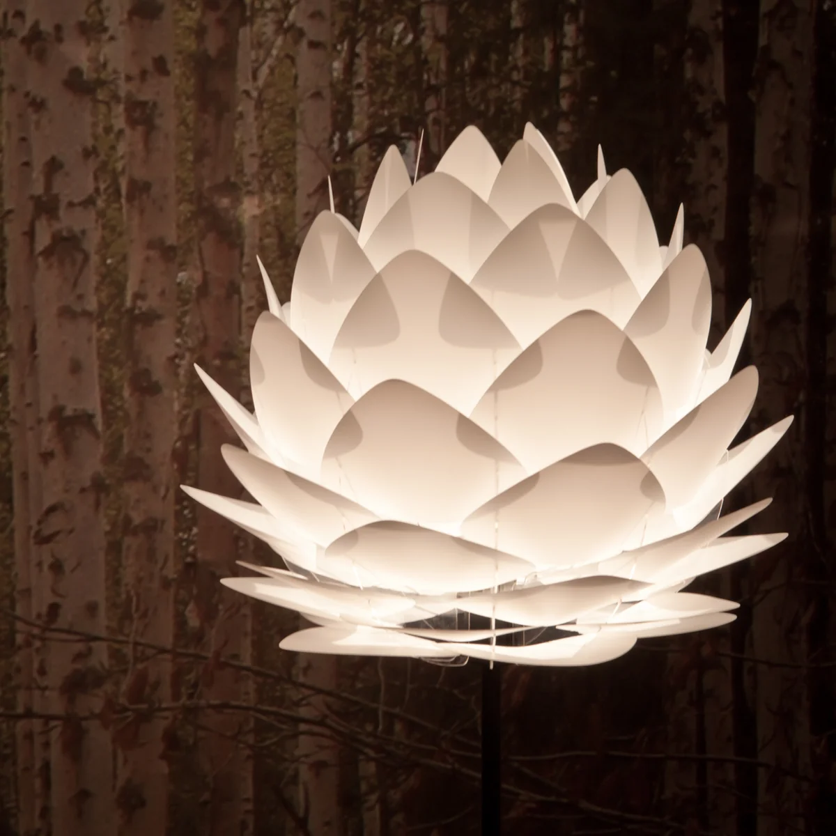 Die beliebte Silvia Leuchte von Umage begeistert mit einer wabenförmigen Optik, die die Design-Leuchte zu einem besonderen Blickfang im Wohnbereich macht. Universell lässt sich die Leuchte mit Baldachin in eine Pendel- oder mit passendem Tripod-Untergestell in eine Tisch- oder Stehleuchte verwandeln.
