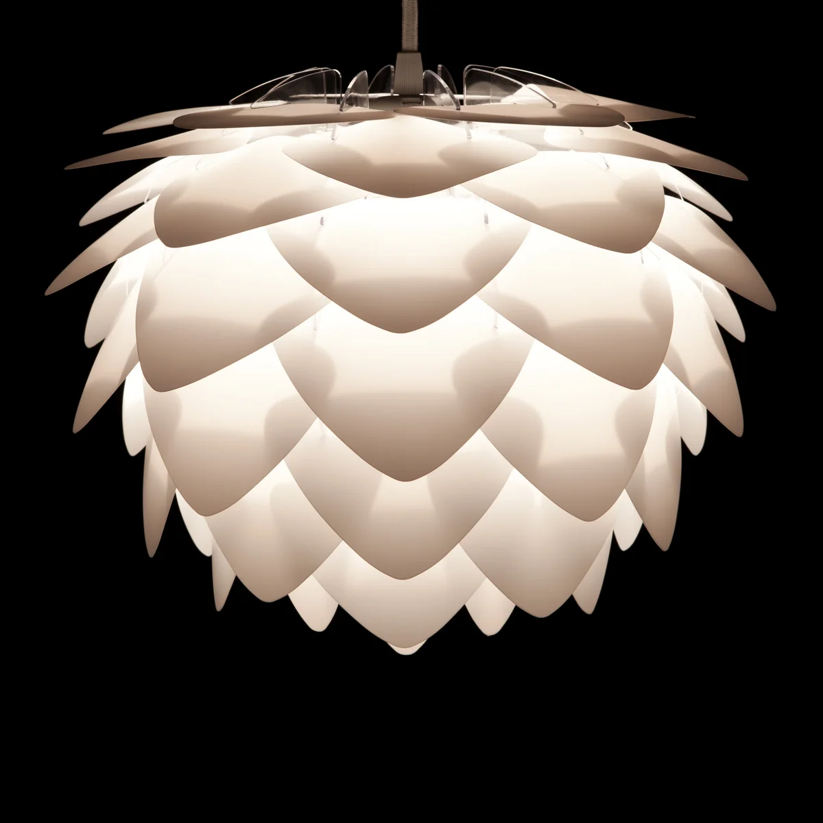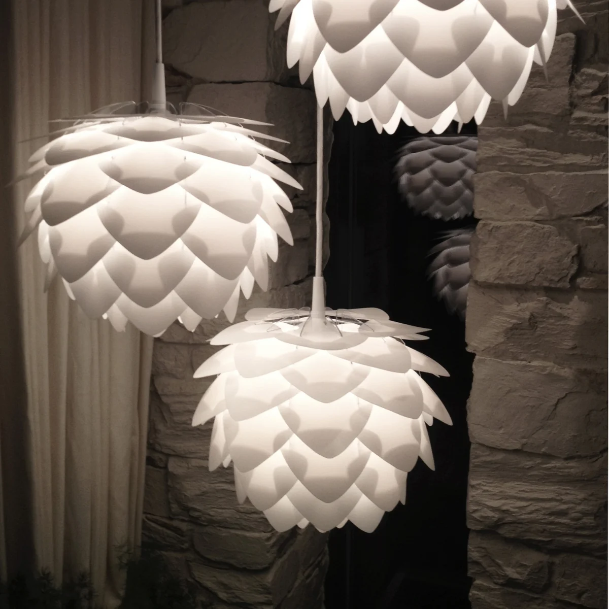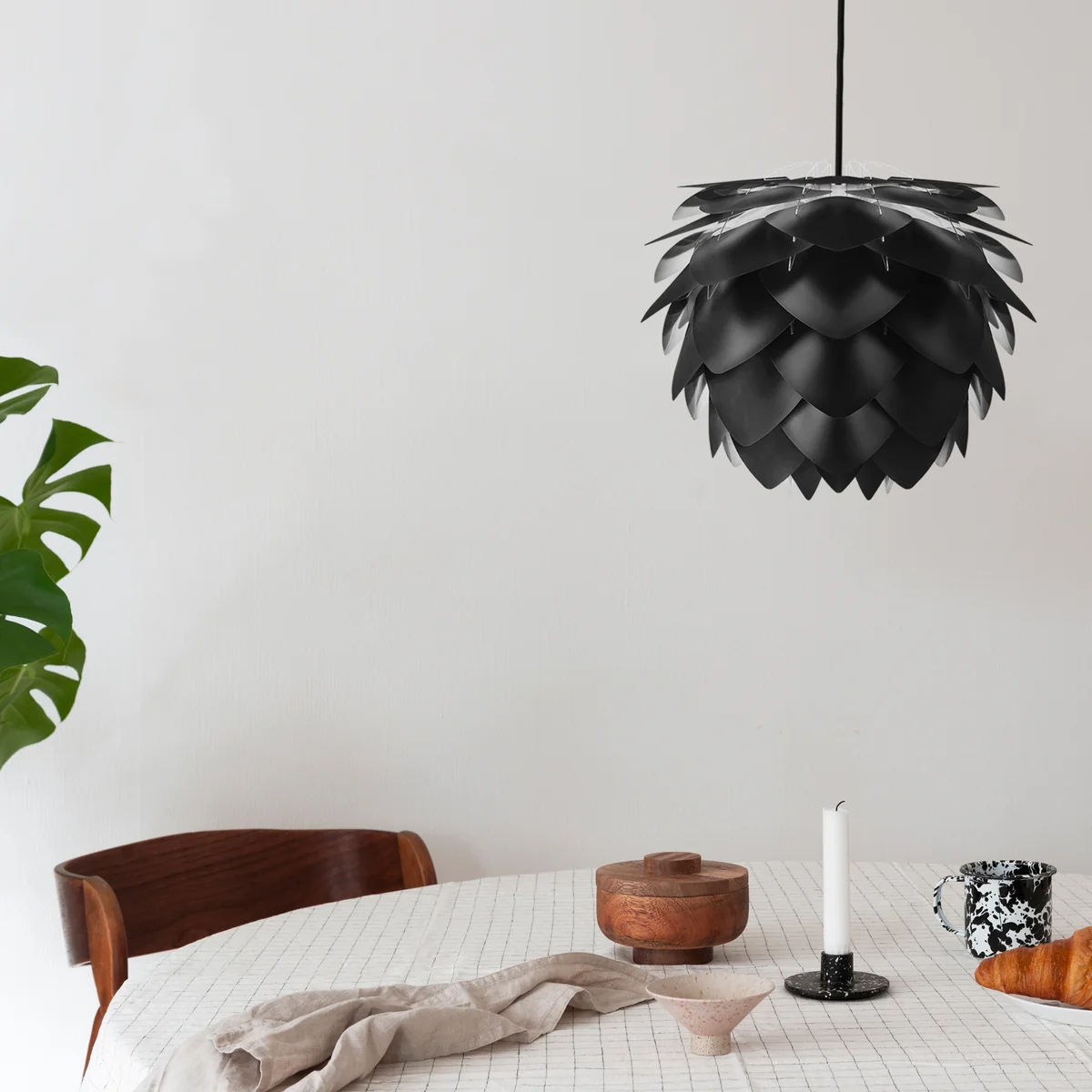 In mehreren Farben präsentiert sich die Silvia Leuchte dezent oder extravagant. In jedem Fall ist das naturalistische Design, das in seiner Form an einen Tannenzapfen erinnert, ein echter Blickfang.