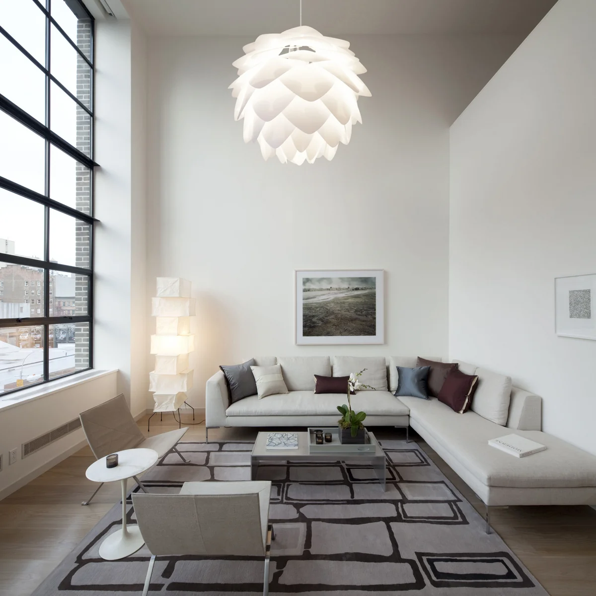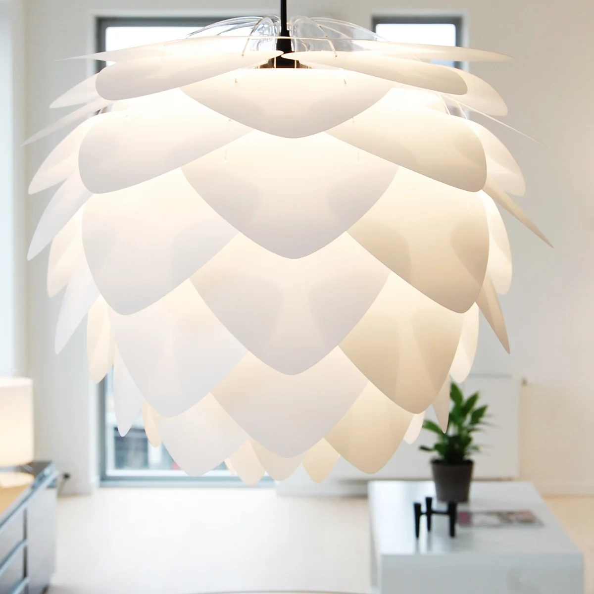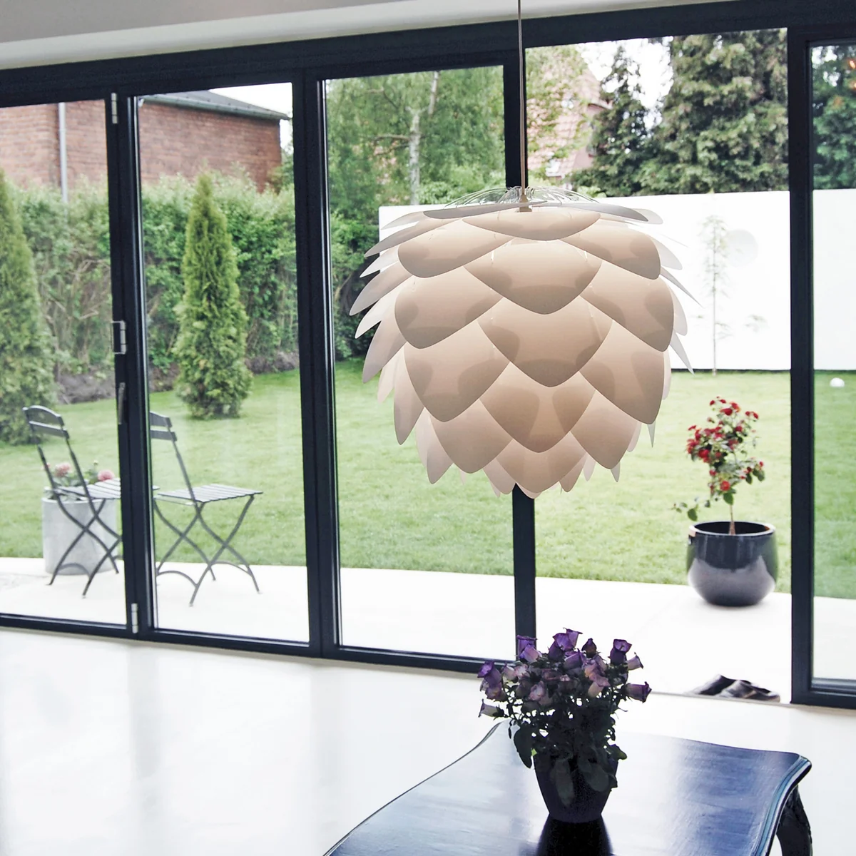 In mehreren Farben präsentiert sich die Silvia Leuchte dezent oder extravagant. In jedem Fall ist das naturalistische Design, das in seiner Form an einen Tannenzapfen erinnert, ein echter Blickfang.