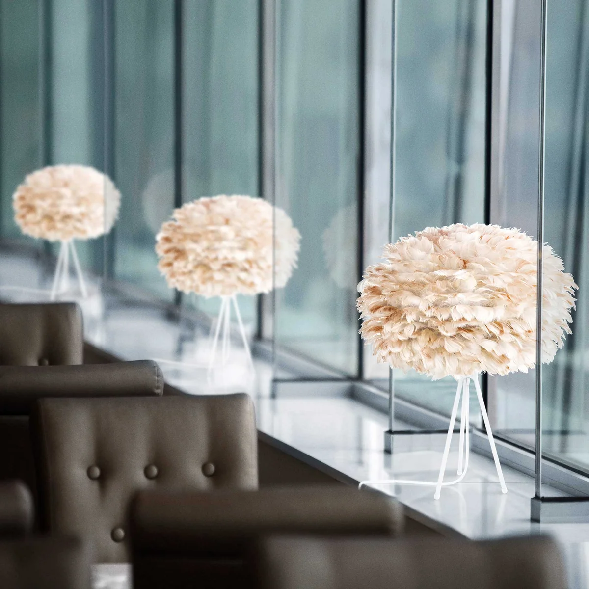 Durch die Federn gedämpft, erstrahlt die Eos Leuchte in einem warmen, indirekten Licht. Damit lässt sich die Federnleuchte besonders im Wohn- und Schlafbereich einsetzen - dort schafft die Umage Leuchte eine gemütliche und atmosphärische Stimmung.