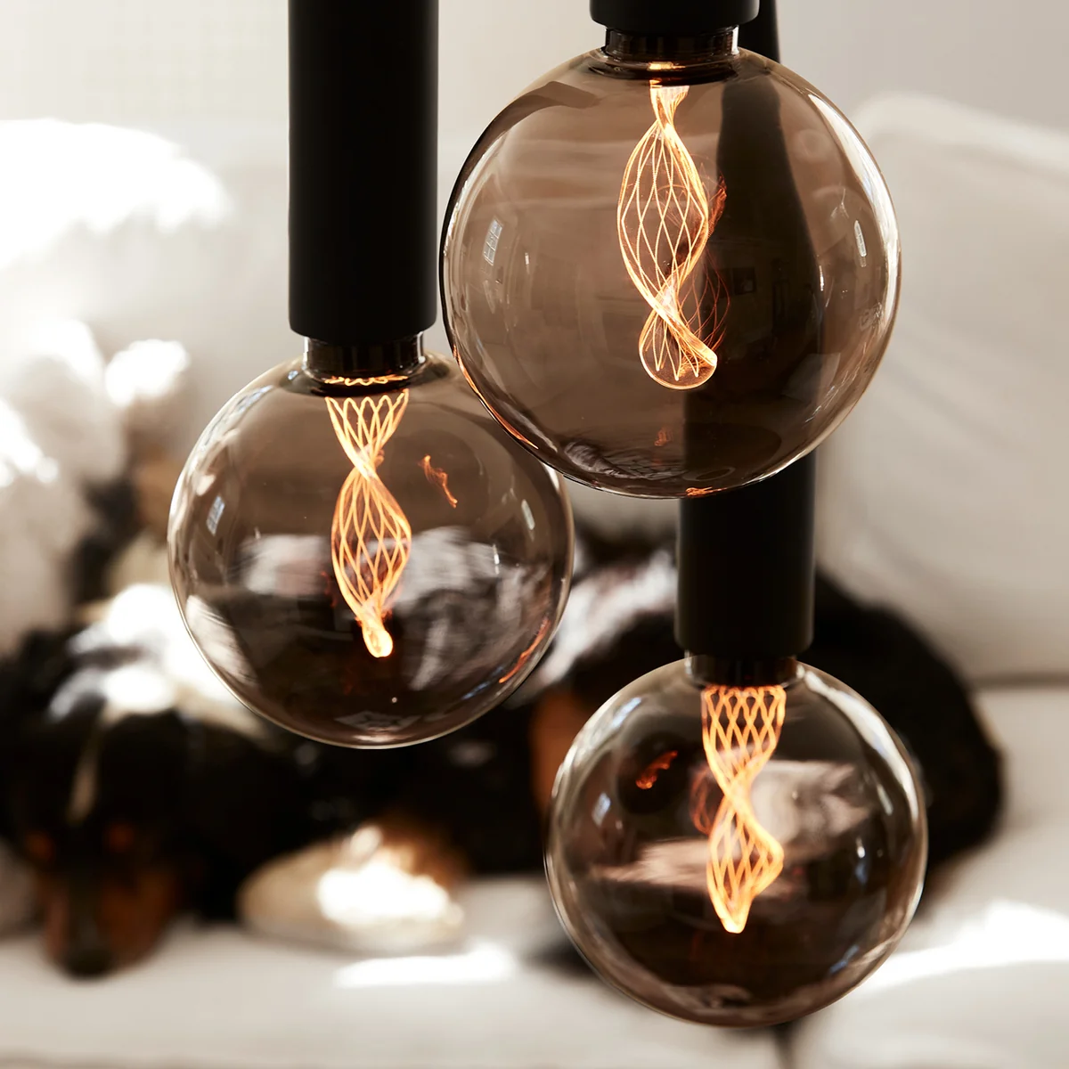 Das LED Curve Leuchtmittel des schwedischen Herstellers NUD Collection begeistert mit seinem aussergewöhnlichen, äusserst modernen Design. Die gedrehte Säule im Inneren erhellt auf wundervolle Weise die Glühbirne. Der Kontrast des schwarz getönten Glases und der auffälligen Lichtquelle sind ein herausragender Blickfang in jedem Wohnbereich. Ob als Pendelleuchte oder im stehenden Zustand.