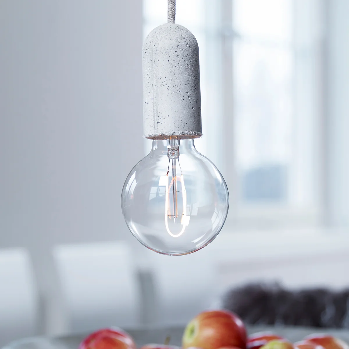 In Kombination mit den dezenten Pendelleuchten von NUD-Collection werden die Globe Leuchtmittel zum besonderen Blickfang im Wohnraum. Einfach eine Fassung inkl. Textilkabel nach Wunsch aussuchen und mit einem ausdrucksstarken Leuchmittel kombinieren, schon haben Sie eine ganz individuelle Pendelleuchte.