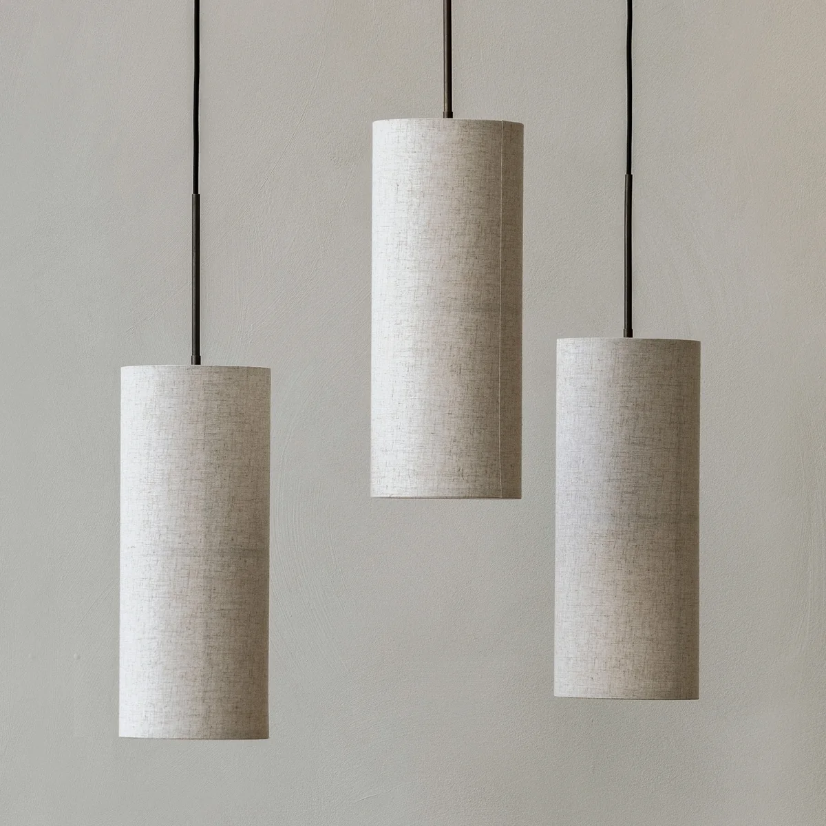 Die Hashira Pendelleuchte von Audo ist ein Entwurf des Designstudios Norm Architects, das sich beim Design an den traditionellen, japanischen Reispapierlaternen orientiert hat. Gefertigt ist die Pedelleuchte aus semi-transparentem Leinengewebe, welches das Licht sanft hindurch scheinen lässt. Ist die Leuchte angeschaltet, so wird auch das grobe Gitter im Inneren durch einen Schatten sichtbar, was der Leuchte eine gewisse Struktur verleiht.
