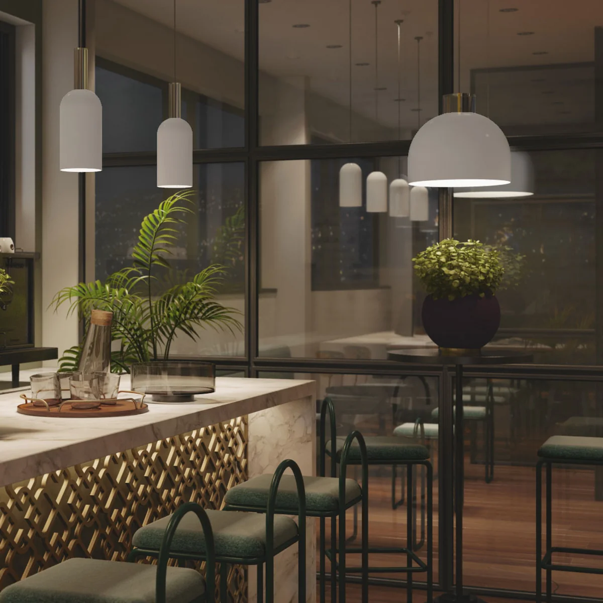 Die Pendelleuchte lässt sich einzeln aber besonders zu mehreren schön über einem Esstisch oder eine Kochinsel in der Küche platzieren. Das nach unten gerichtete Licht leuchtet die darunterliegende Fläche auf schöne Weise aus. Die Luceo Pendelleuchte ist in verschiedenen Formen und Farben erhältlich.