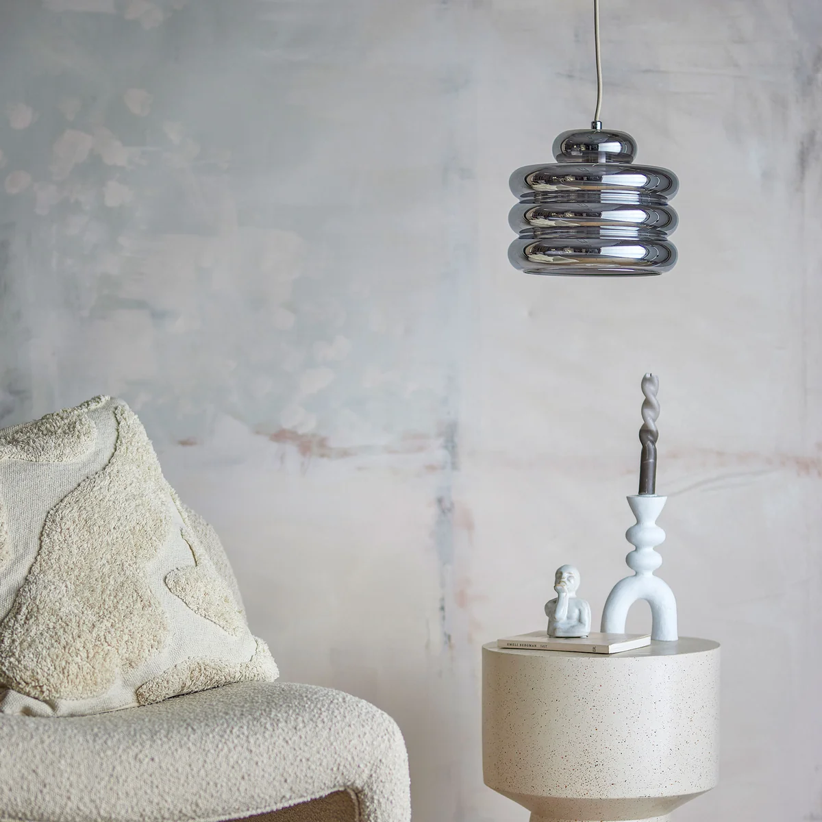 Die Spike Pendelleuchte von Bloomingville vereint schlichte Form mit festlichem Charme. Ihr rundes, organisches Design aus silberfarbenem Glas sorgt für eine stilvolle Atmosphäre, während der edle Chromlook einen modernen Akzent setzt. Ob als einzelnes Highlight über dem Esstisch oder in Kombination mit mehreren Leuchten – die Spike Pendelleuchte bringt Eleganz und Leichtigkeit in jeden Raum.