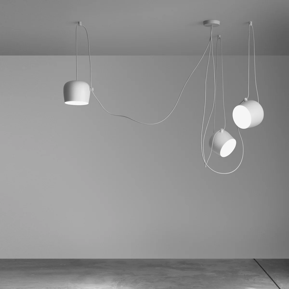 Der Leuchtenkopf der AIM LED-Pendelleuchte kann in beliebiger Höhe mit veränderbarer Schrägstellung angebracht werden - die völlige Freiheit lässt einzigartige Kombinationen zu. Die Installationen, die dabei entstehen, erinnern bereits mehr an Kunst als an Design. Das direkte, klare Licht der Flos-Leuchte eignet sich für Wohnräume und zur Beleuchtung einzelner Objekte.