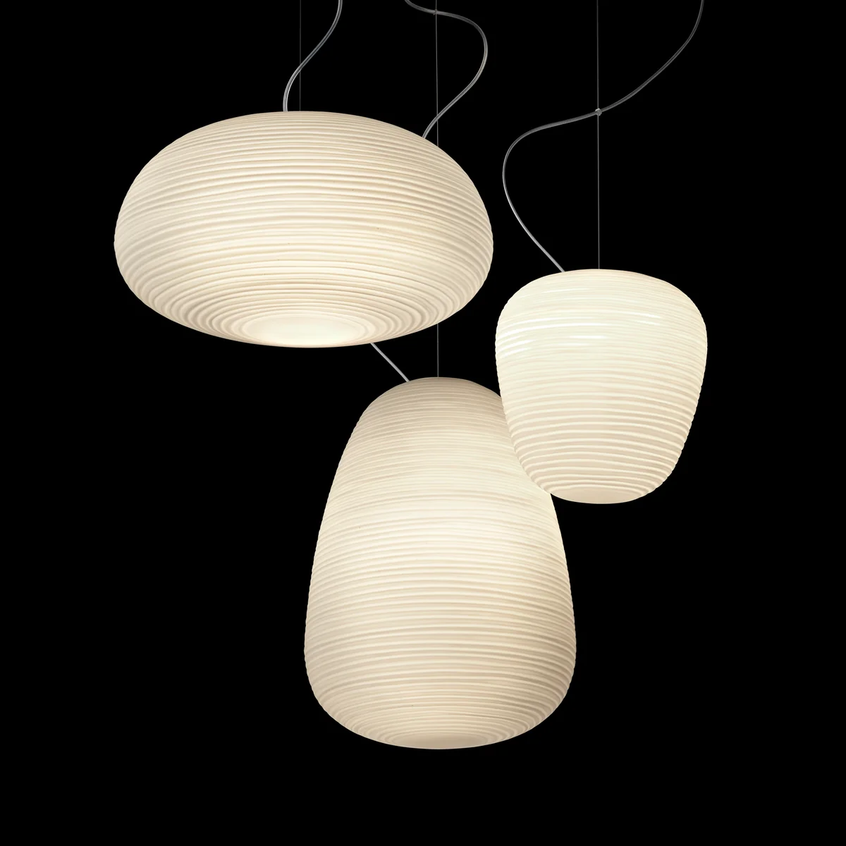 Die Rituals Pendelleuchte, die von den Architekten und Designern Ludovica + Roberto Palomba für Foscarini entworfen wurde, besticht vor allem durch ihre Plastizität. Die Leuchten bewegen sich spielerisch auf dem schmalen Grat zwischen Morgenland und Abendland. Die Herausforderung war es, die Leichtigkeit des Washi-Papiers der orientalischen Laternen in einer Gruppe von Glasleuchten umzusetzen.