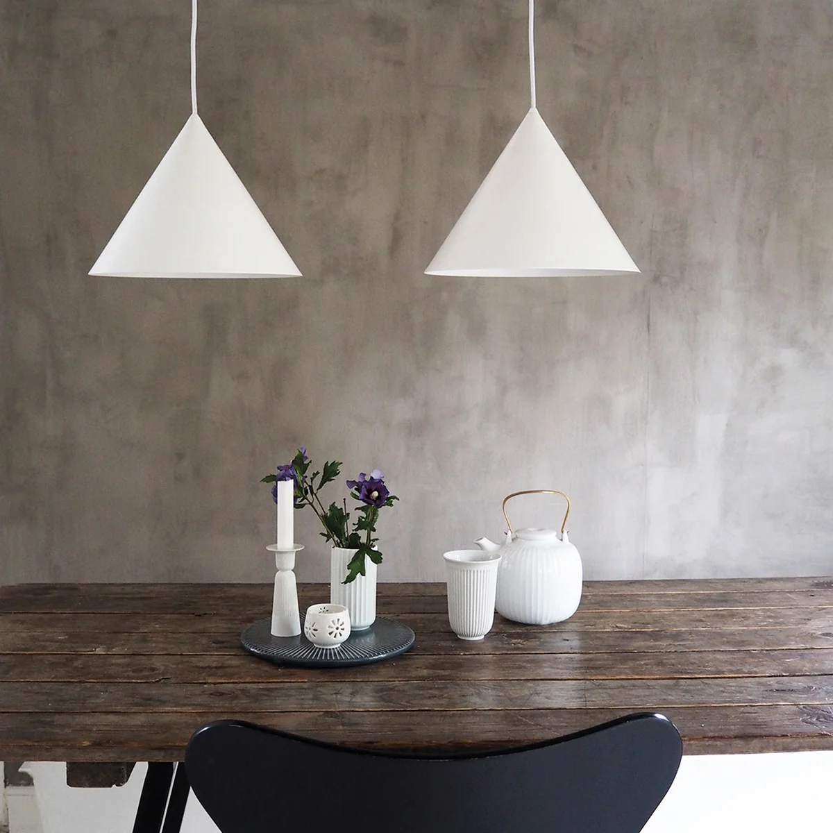 Der Kegel ist eine klassische geometrische Form wie der Würfel und die Kugel. Vilhelm Lundstrøm spielt bereits mit diesen Formen in seinen Gemälden minimalistischer Tableaus und jetzt ist der Kegel zum Hauptelement der von Benny Frandsen entworfenen Benjamin-Leuchten-Kollektion geworden. Alle Modelle zeichnen sich durch einen konische Form, ein gradliniges Design und einen monochromen Look aus.