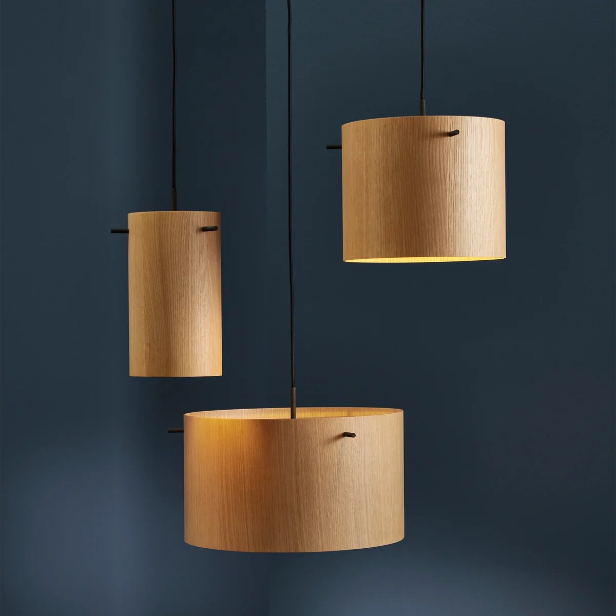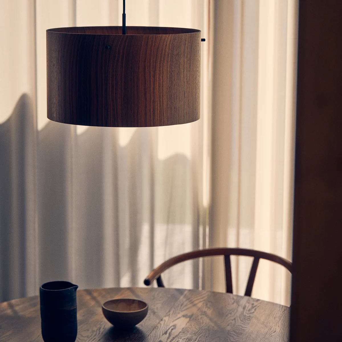 Die 1954 von Friis & Moltke entworfene FM 1954 Pendelleuchte für Frandsen ist ein Beispiel für minimalistisches Design. Ihre klaren, runden Linien werden durch zwei neue FSC-zertifizierte Oberflächen in Walnuss- und Eichenfurnier ergänzt, die dem zeitlosen Design eine wärmere, natürlichere Ästhetik verleihen. Die charakteristischen Merkmale und Muster der natürlichen Furnieroberflächen verleihen jeder Pendelleuchte einen einzigartigen skulpturalen Charakter.