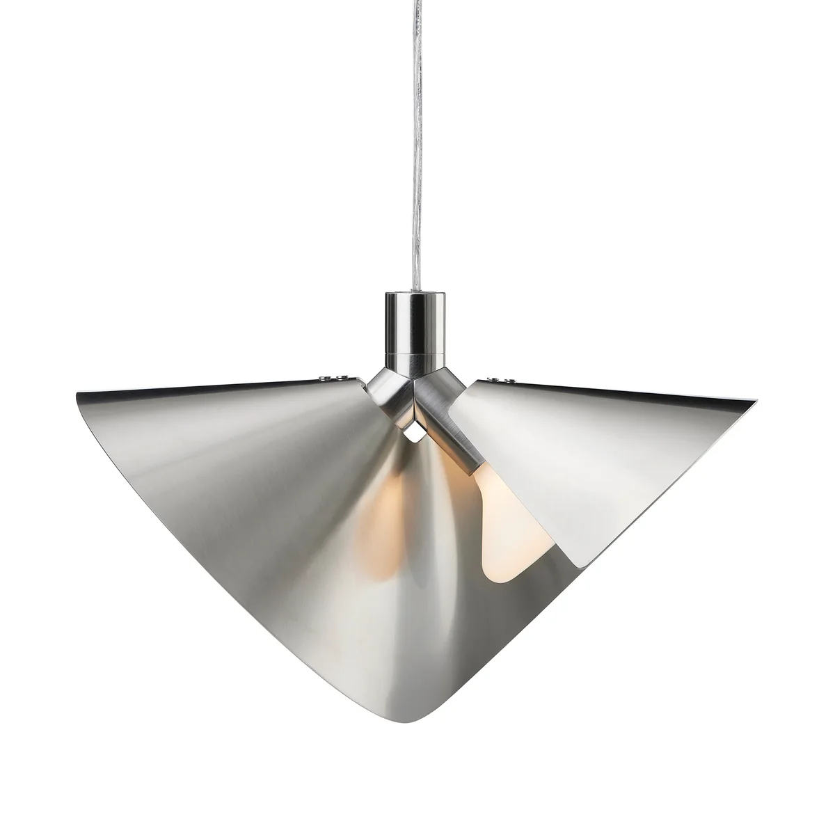 Die Peel Pendelleuchte von Frandsen, eine Edelstahlleuchte der niederländisch-dänischen Designerin Sissel Gram Warringa, die in sorgfältiger Handarbeit hergestellt wurde, um einen überraschend weichen, diffusen Lichteffekt zu erzeugen. Die Peel Pendelleuchte ist die ideale Wahl für die meisten Ess- oder Küchenbereiche und eignet sich auch gut für Arbeitsbereiche oder andere professionelle Umgebungen.