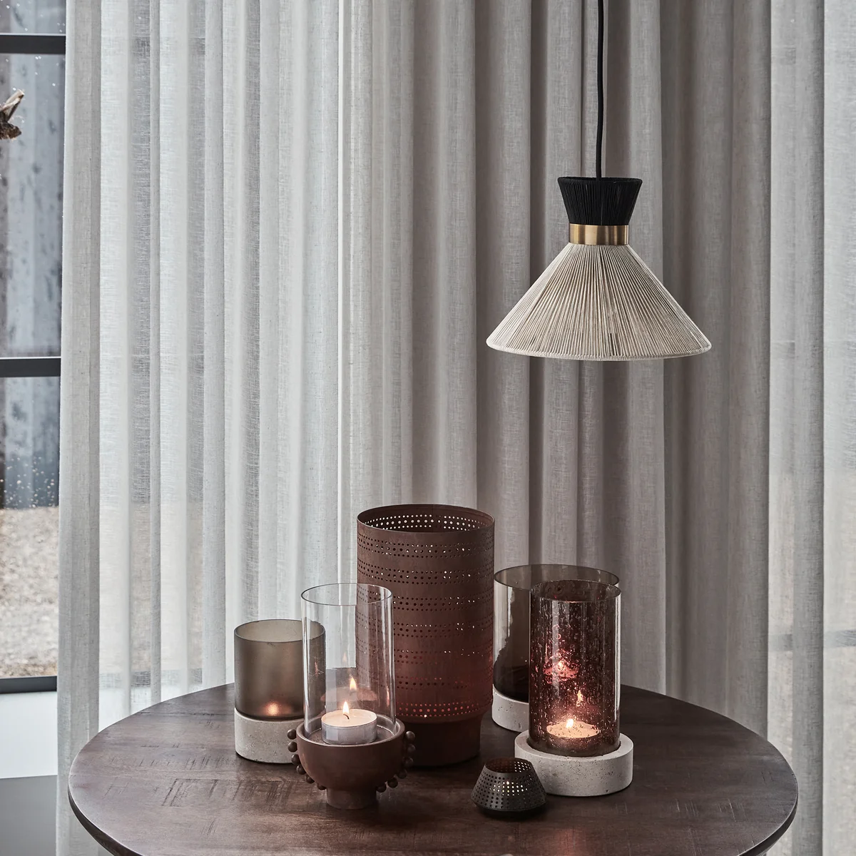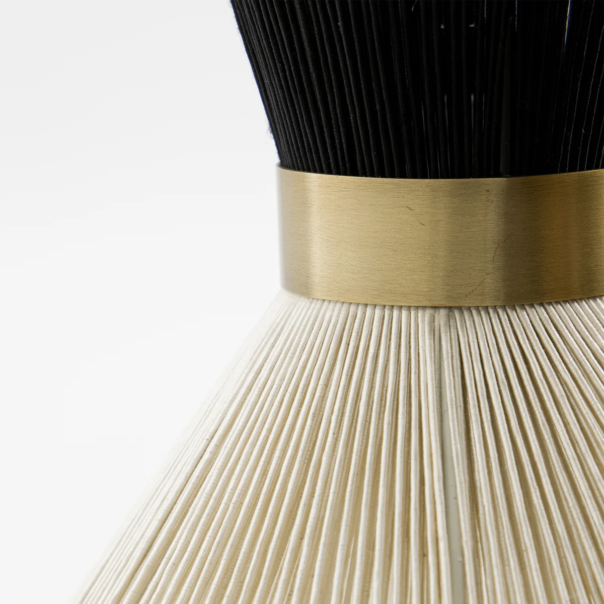 Die Cord Pendelleuchte von House Doctor ist ein echter Blickfang, der Ihrem Raum Eleganz und Raffinesse verleiht. Diese exquisite Leuchte kombiniert robustes Eisen und edles Messing mit feinen cremeweissen und schwarzen Polyesterfäden, die den Schirm kunstvoll umhüllen. Das Design verbindet moderne Ästhetik mit zeitlosem Charme und sorgt für ein warmes, einladendes Licht, das jeden Raum in eine stilvolle Wohlfühloase verwandelt. Ob über dem Esstisch, im Wohnzimmer oder in der Küche – die Cord Pendelleuchte setzt in jeder Umgebung ein stilvolles Statement.