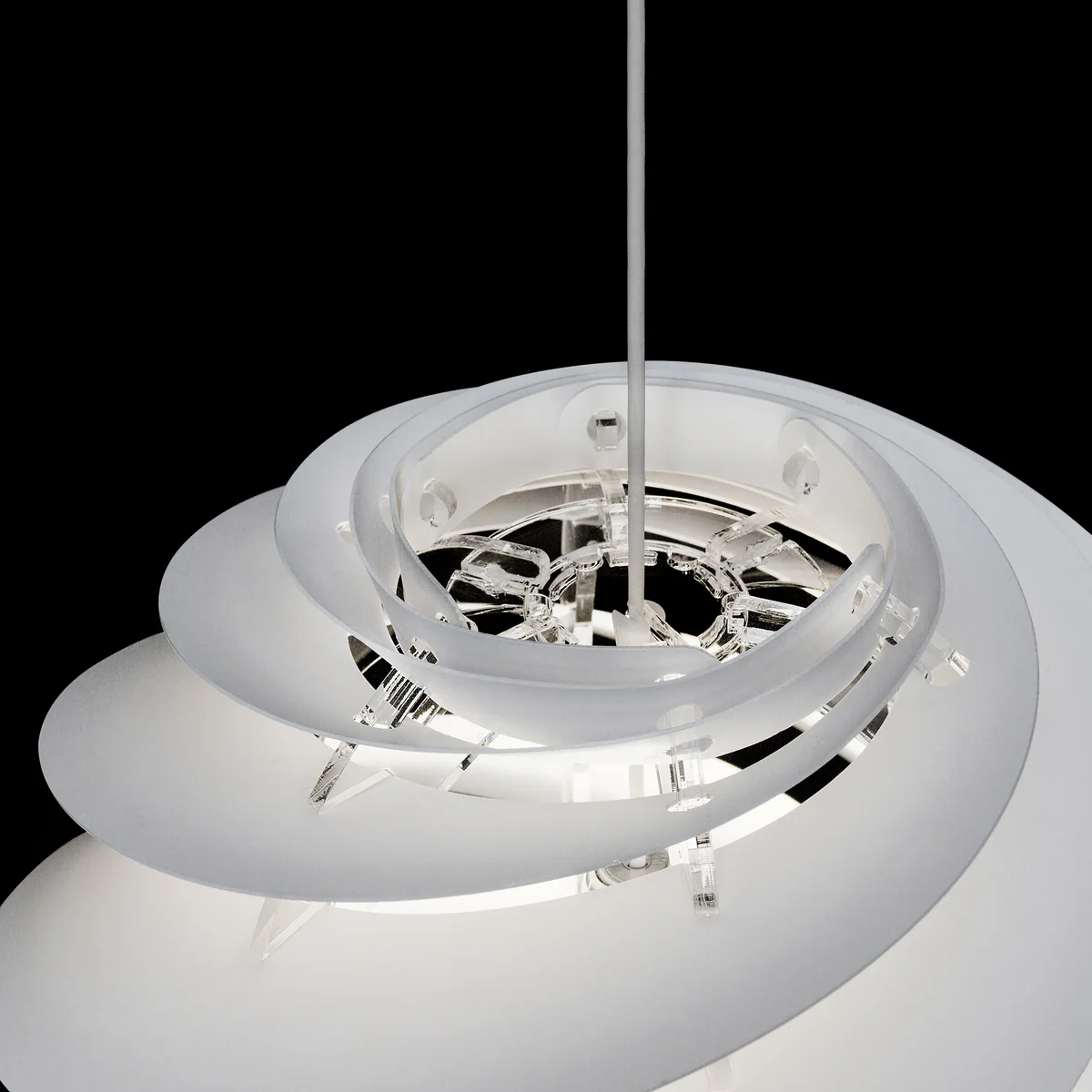 Das Design für die Swirl Pendelleuchten-Kollektion von Le Klint stammt von dem dänischen Designer Øivind Alexander Slaatto. Swirl wurde mit der Absicht entworfen unangenehmes Blenden der Lichtquelle zu verhindern und eine warme, gleichmässige Lichtverteilung zu erzeugen.