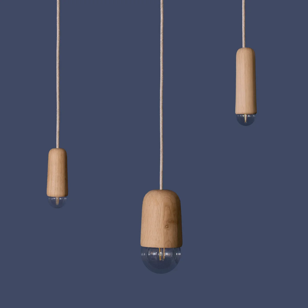 Bestehend aus einem Textilkabel, einer Ummantelung für die Fassung aus Eichenholz und einem Leuchtmittel, welches von der Eichenholzummantelung sicher umhüllt wird, strahlt die Leuchte eine beruhigende Atmosphäre aus und sorgt für warmes Licht in jedem Raum.
