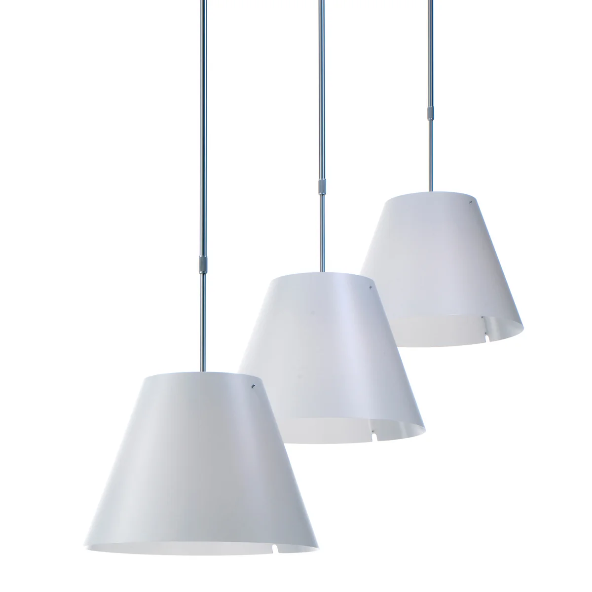 Die drei Einzelteile der Luceplan Constanza können separat erworben werden. Auf diese Weise ist es möglich, jedes Teil günstig auszutauschen. Luceplan empfiehlt zum Betrieb der Costanza Pendelleuchte ein Leuchtmittel mit E27 Sockel und maximal 150 Watt.