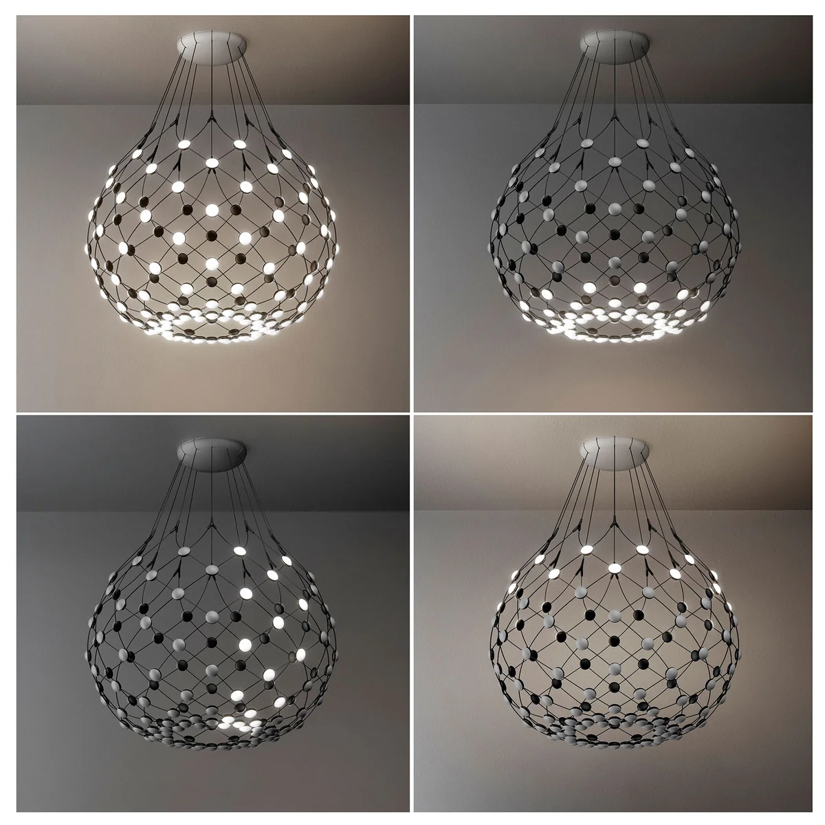 Die Mesh Pendelleuchte von Francisco Gomez Paz für Luceplan ist eine hoch technologische und moderne LED-Leuchte, die unterschiedliche Lichtszenarien anbietet, um volle Kontrolle über den Lichteinfluss im Raum zu haben.