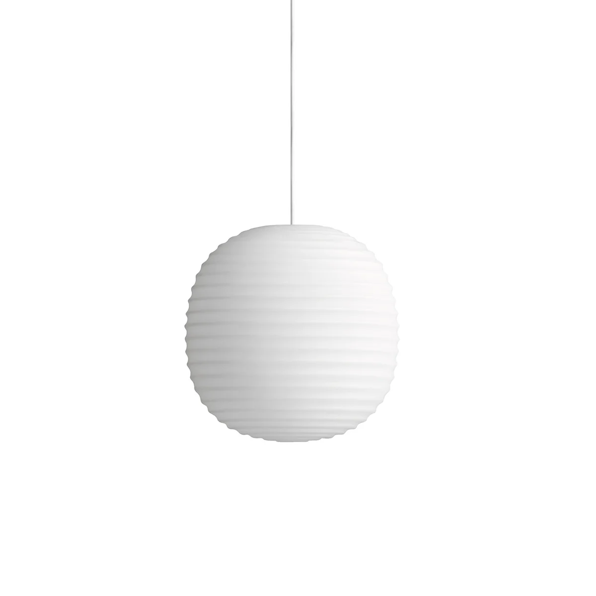 Die Lantern Pendelleuchte L besticht durch ihr zeitloses Design, das von klassischen chinesischen Reispapierlaternen inspiriert ist. Der grosse, opalweisse Glasschirm verleiht der Leuchte eine sanfte Lichtstreuung, die eine behagliche und gleichmässige Beleuchtung erzeugt. Das matte Glas bietet eine weiche Lichtdiffusion und verhindert Blendungen, während die strukturierten Rippen des Glases dem Design Tiefe und Charakter verleihen. Die Aufhängung aus schlankem, schwarzem Metall rundet das elegante Erscheinungsbild ab und sorgt für Stabilität und Stil.