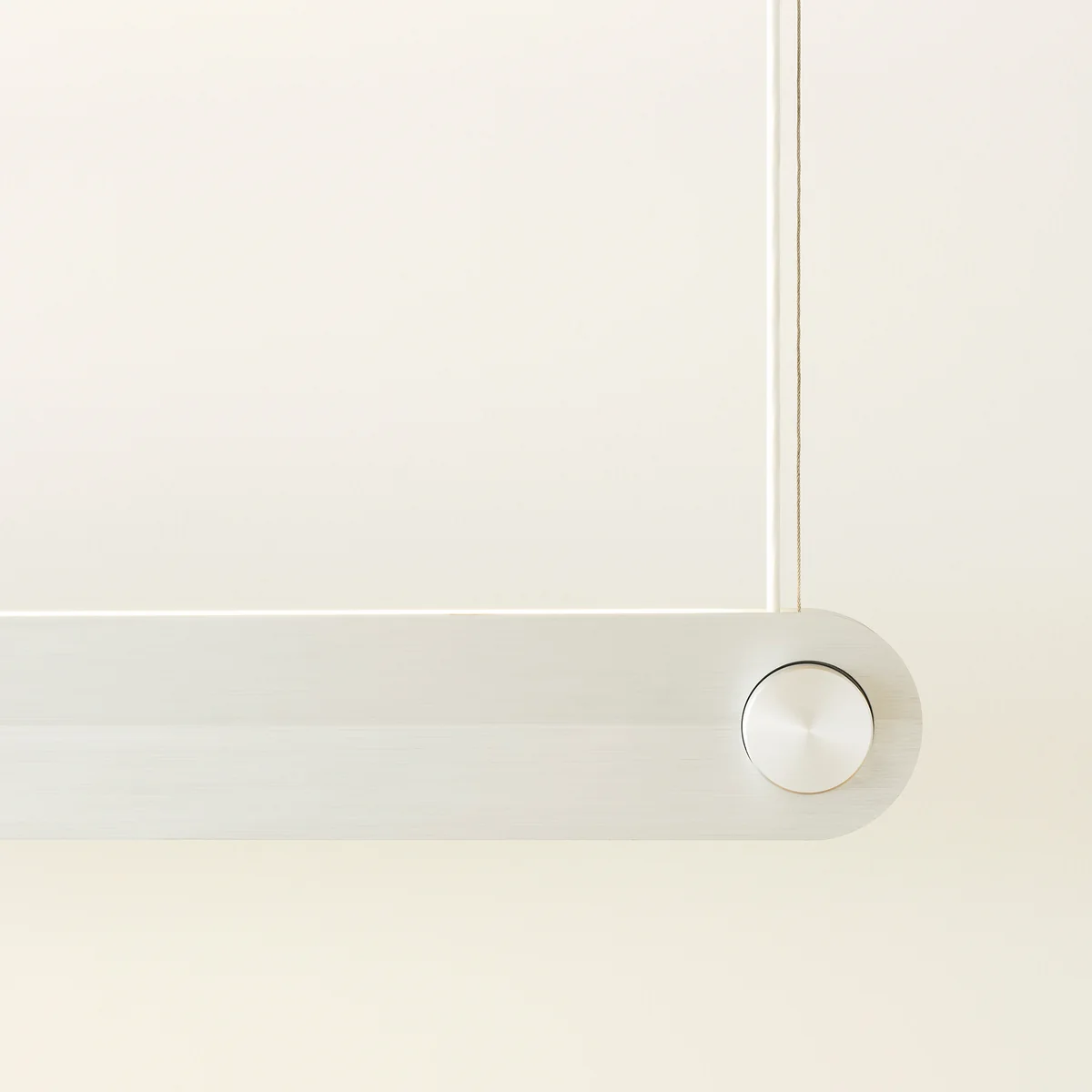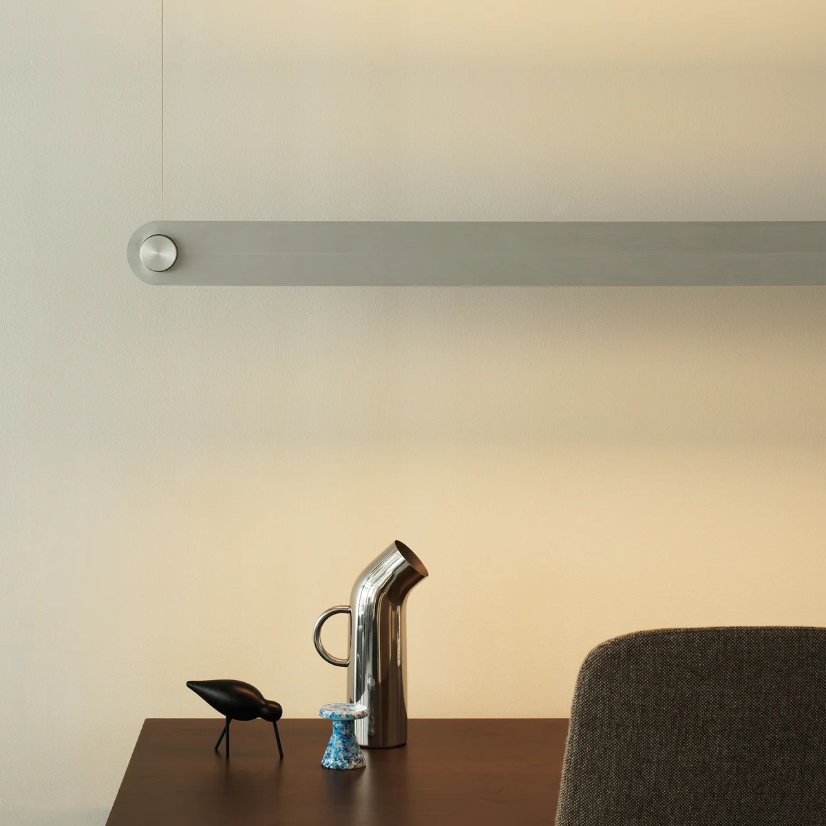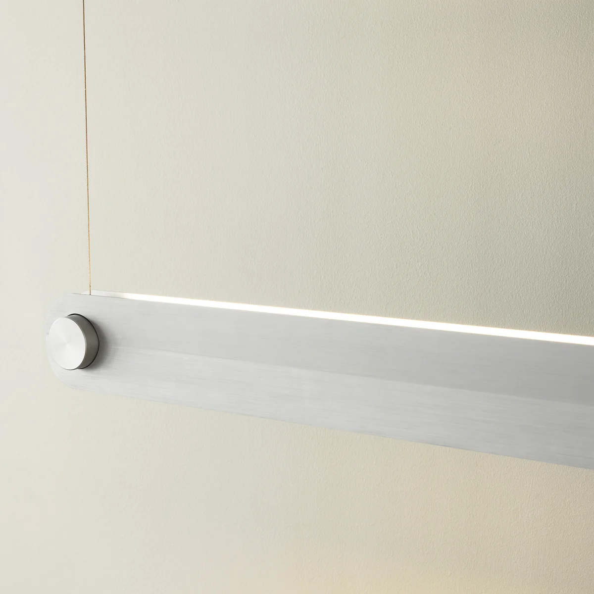 Die mit modernster LED-Technologie betriebene Dim Linear LED Pendelleuchte bietet die Möglichkeit, sowohl die Helligkeit als auch die Farbtemperatur einzustellen, wodurch sie sich perfekt an verschiedene Umgebungen anpassen lässt. Die sorgfältig entworfene Form aus langlebigem Aluminium strahlt das Licht sowohl nach oben als auch nach unten ab und hebt die Decke elegant hervor, während sie gleichzeitig für eine effiziente Beleuchtung sorgt. Diese bidirektionale Beleuchtung schafft ein harmonisches Gleichgewicht, das den visuellen Reiz des Raumes erhöht.