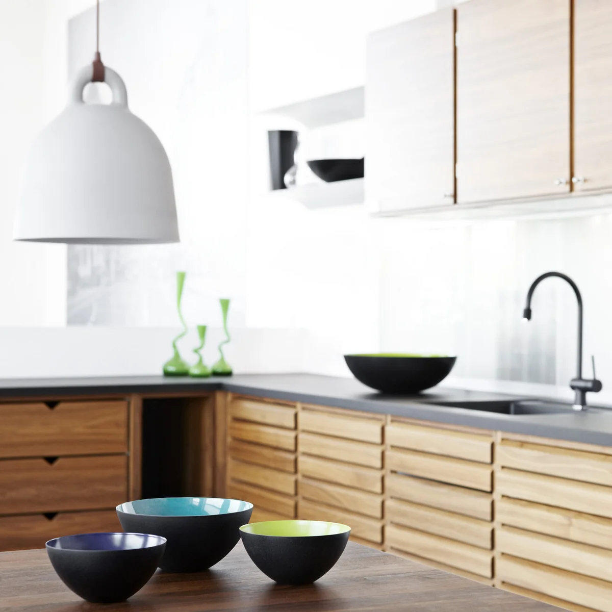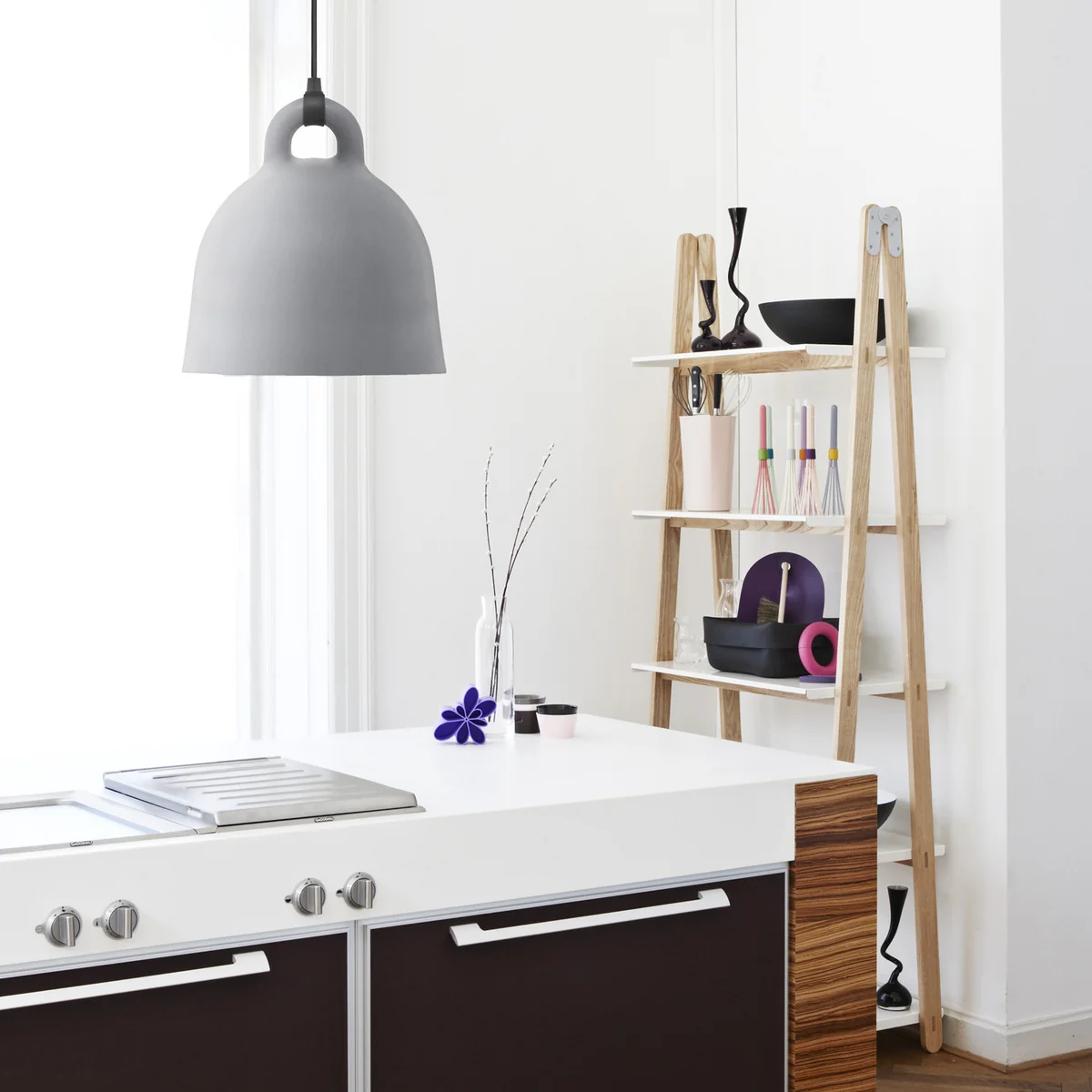 Die Normann Copenhagen Bell ist eine Richtungsleuchte, die - je nachdem, von welcher Seite man sie betrachtet - ihren Charakter ändert und neue Eindrücke vermittelt. Die helle Innenseite reflektiert das direkte Licht, das sich kegelförmig ausbreitet und zum Beispiel über dem Esstisch eine gute Beleuchtung gibt. Besonders die Kombination verschiedener Grössen macht die Bell zum Blickfang.