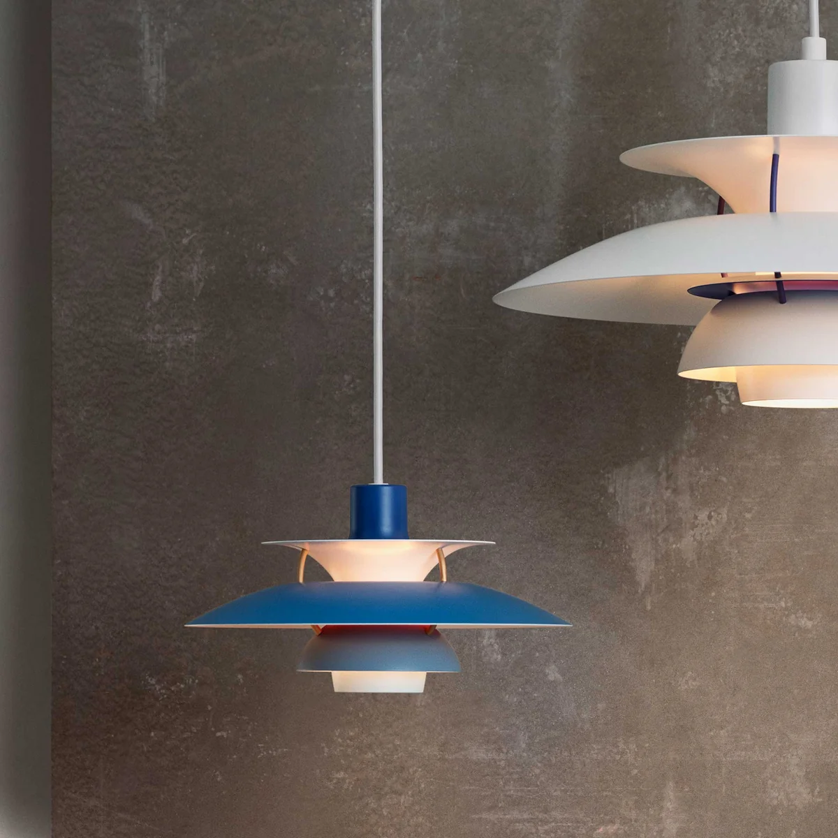 Der Name PH 5 entspricht dem Durchmesser des obersten Schirms von 50 cm. Die PH 5 Miniversion hingegen verfügt über einen Durchmesser von nur 30 cm und eignet sich damit bestens für kleine Räume. Aufgrund der breiten Farbpalette lässt sich die PH 5 Mini ausserdem hervorragend zu mehreren als ausdrucksstarkes Ensemble aufhängen.