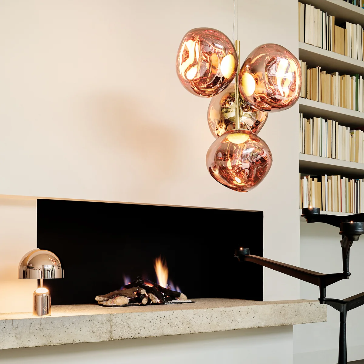 Der Melt Chandelier Mini LED Kronleuchter bringt die faszinierende Ästhetik der ikonischen Melt-Leuchten in einem kompakteren Format – perfekt für moderne Wohnräume und städtische Umgebungen. Mit vier mundgeblasenen Melt Mini Schirmen in einem eleganten, leicht getönten Opal-Finish erzeugt der Kronleuchter ein schimmerndes Lichtspiel, das an natürliche Perlen erinnert. Gefertigt in Deutschland und ausgestattet mit energieeffizienter LED-Technologie, vereint die Leuchte höchste Handwerkskunst mit moderner Lichtqualität. Die Installation erfolgt über einen einzigen Stromanschluss, was Montage und Platzierung besonders einfach macht.