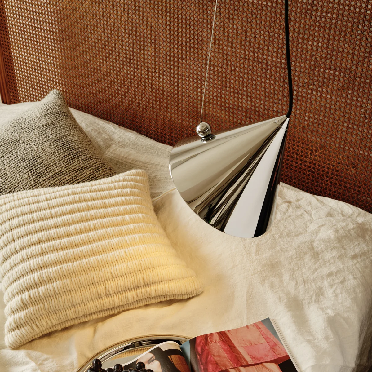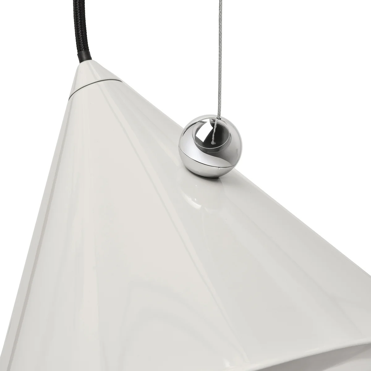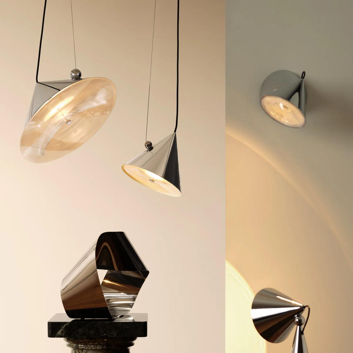 Die Pose Pendelleuchte kombiniert konische Formen mit der Welt der optischen Physik und schafft eine Lampe, die Licht fokussiert und verstärkt.