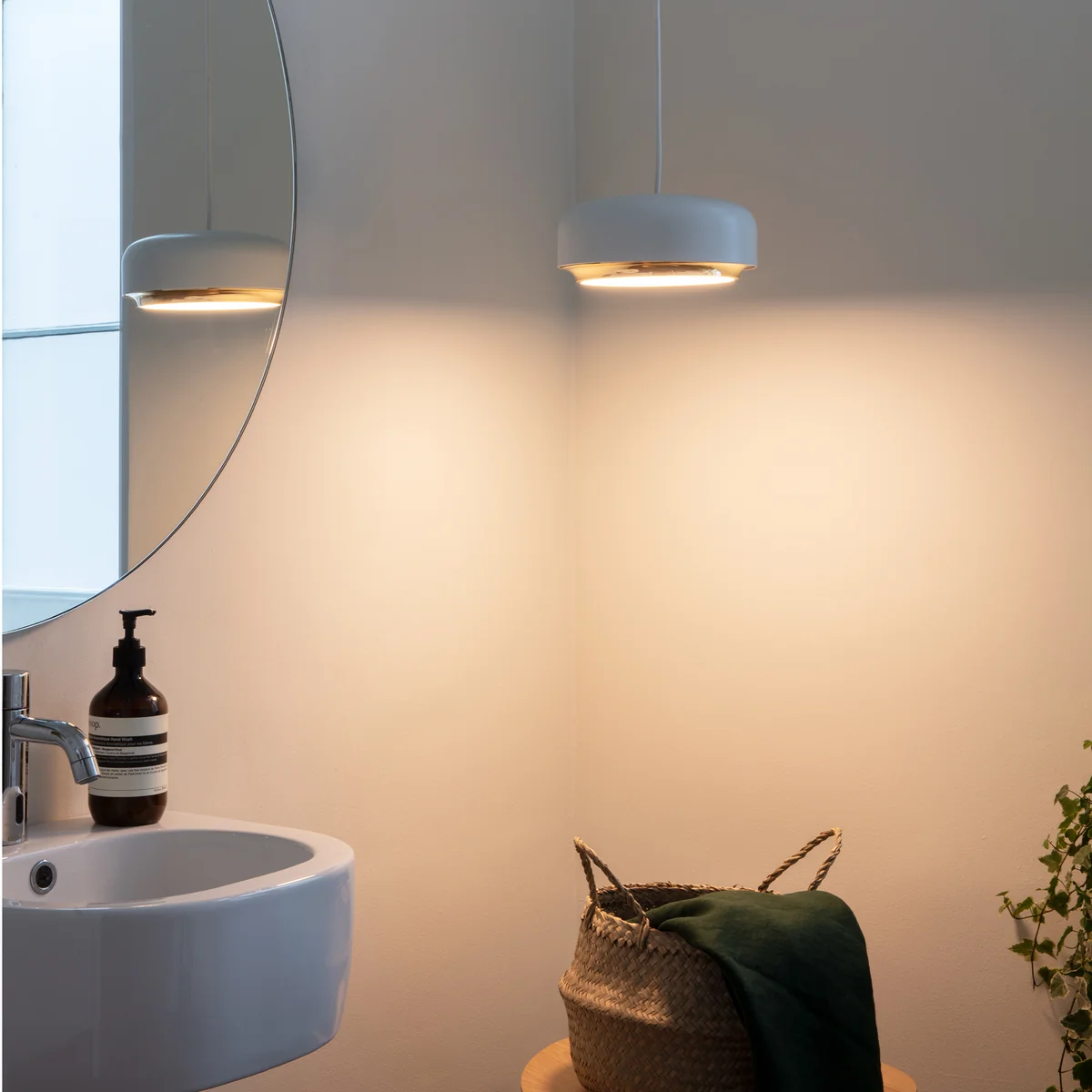 Das eingebaute LED-Panel wird von einem weich-weissen Diffusor abgedeckt, der für ein blendfreies Licht sorgt. Somit eignet sich die Pendelleuchte ideal für den Platz über dem Esstisch oder dem Küchentisch. Erhältlich in verschiedenen Grössen.