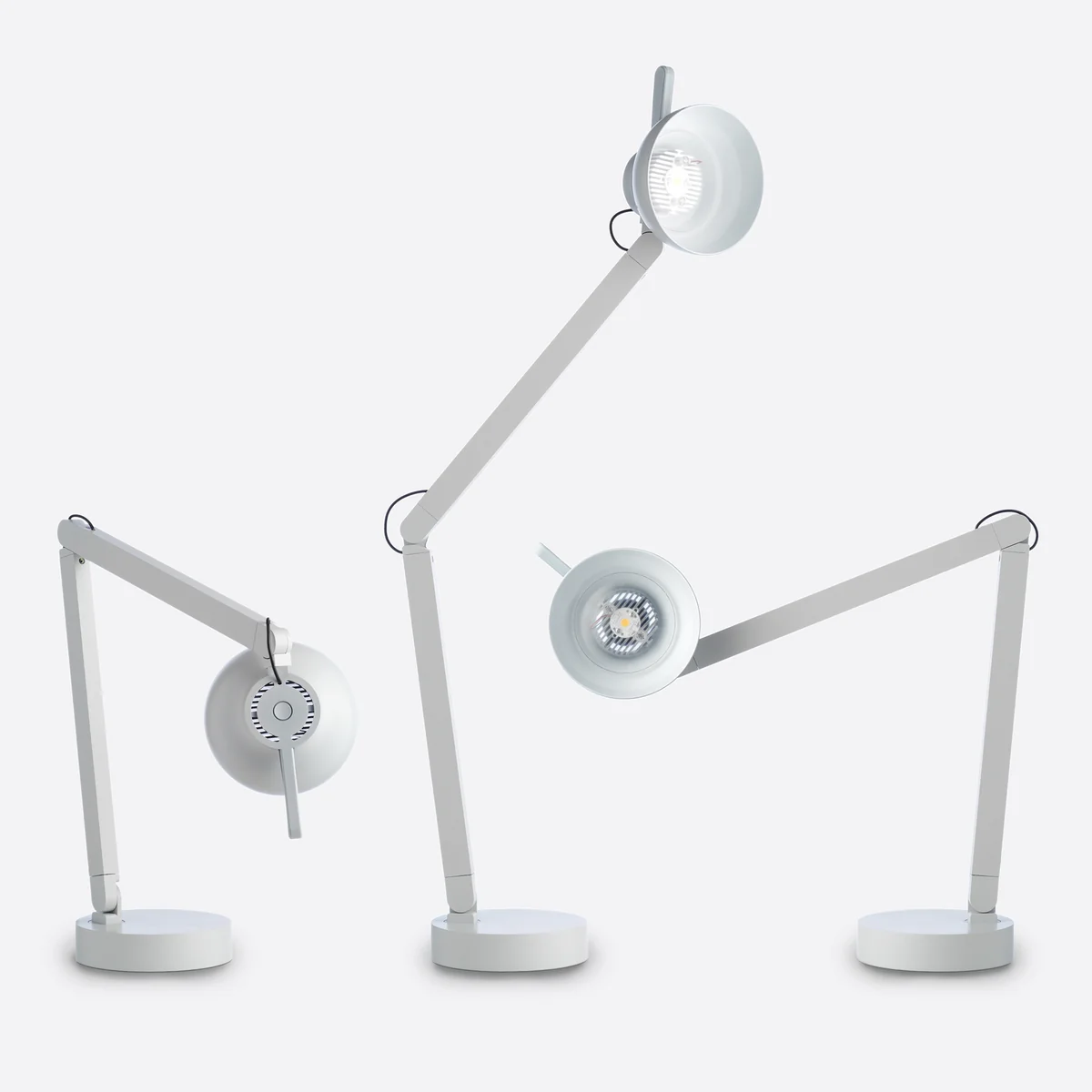 Im Inneren der Arme verbergen sich Gasfedern, die sonst bei der Fertigung von Bürostühlen verwendet werden. Die sorgen dafür, dass Basis und Schirm die gewünschte Position halten. Die Kombination aus all diesen Komponenten verleiht der Leuchte eine funktionale und simple Erscheinung, jeden Bürotisch in Szene setzen.