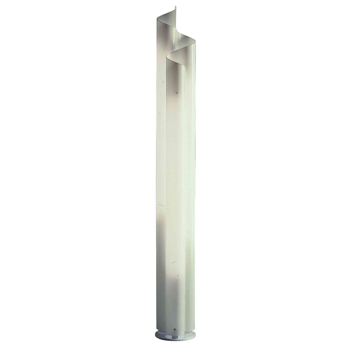 Der lichtdurchlässige Körper von Artemides Chimera Stehleuchte besteht aus Metacrylat. Die gewellte Form der Leuchte wird erreicht, indem das Material während des Herstellungsprozesses heiss gebogen wird. Der Sockel besteht aus lackiertem Metall.