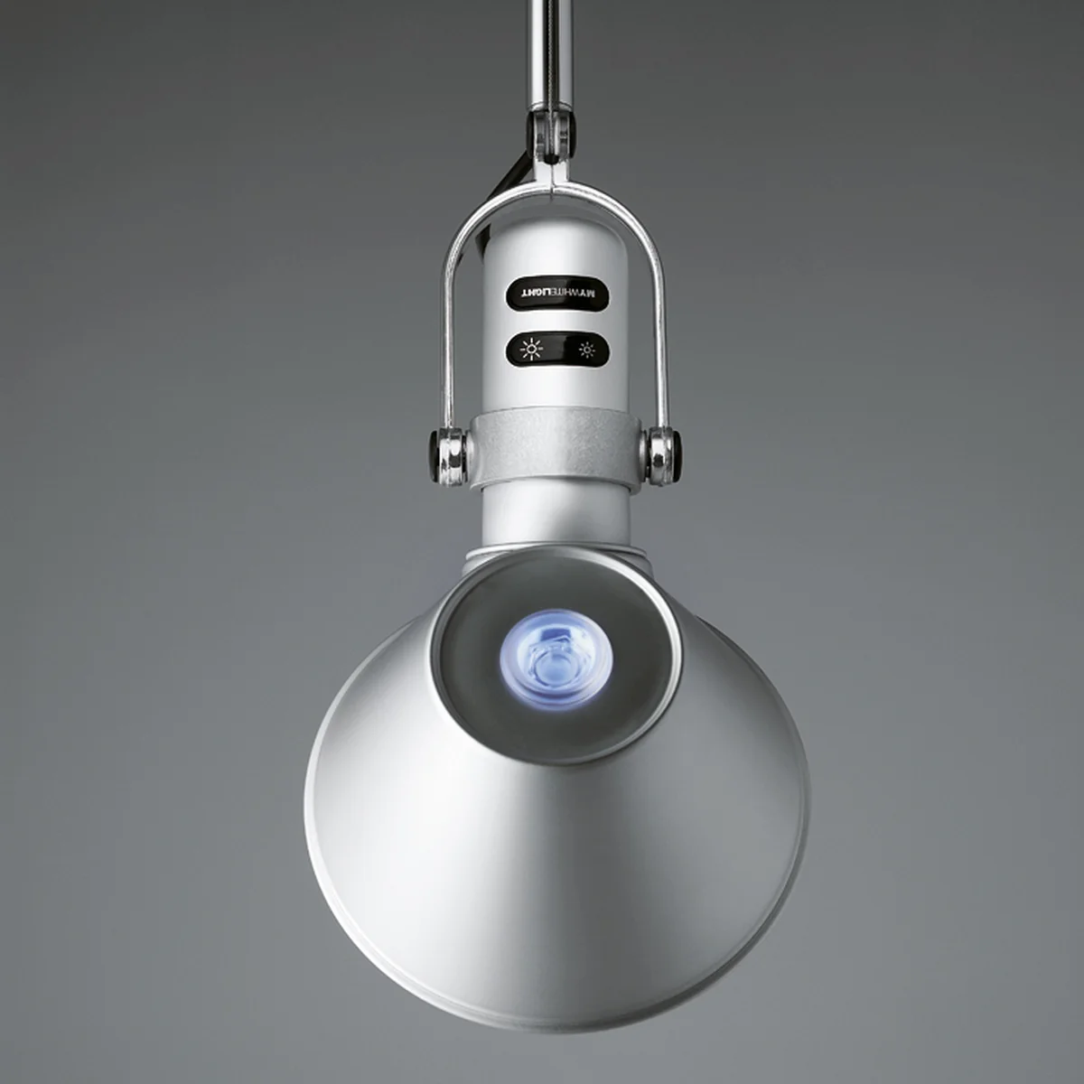 Der Sockel und die ausrichtbaren Arme der Artemide Tolomeo Lettura LED bestehen aus glänzendem Aluminium, der in alle Richtungen ausrichtbare Leuchtenkopf aus matt eloxiertem Aluminium. Die Gelenke sind aus poliertem Aluminium gefertigt. Während sich die Stehleuchte am mittleren Gelenk in der Höhe verstellen lässt, kann sie am unteren Gelenk geneigt und zusätzlich gedreht werden.