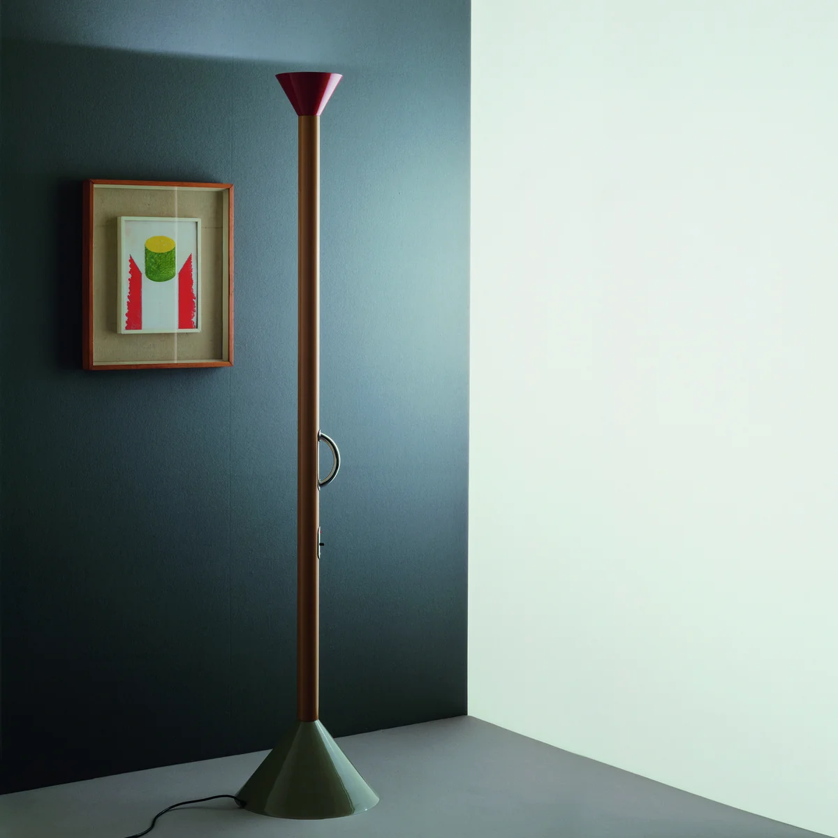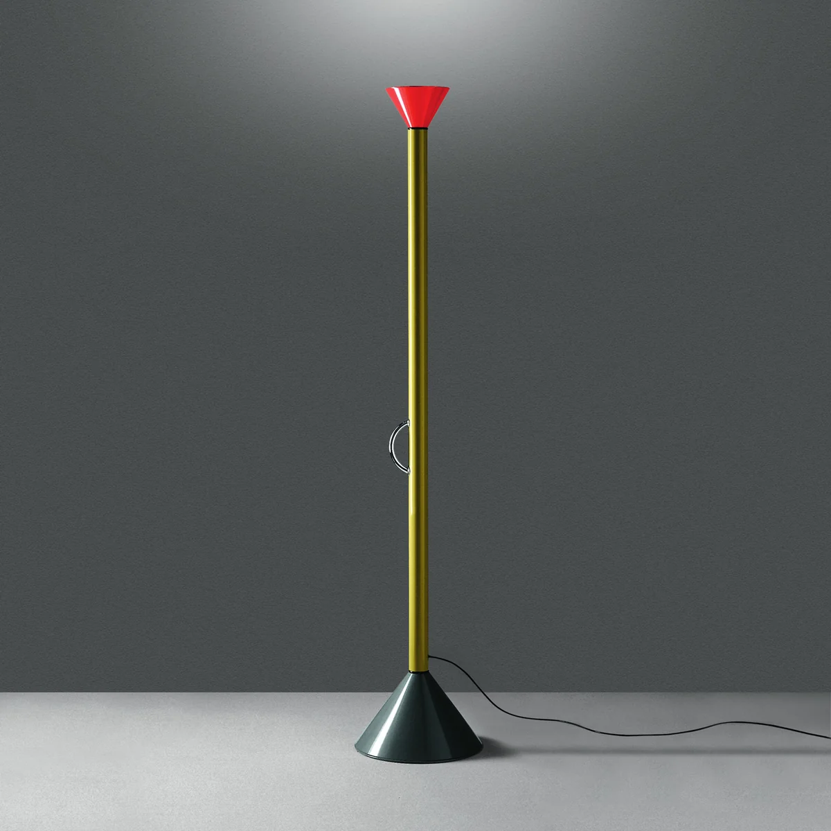 Der italienische Designer Ettore Sottsass hat mit der Callimaco eine Stehleuchte geschaffen, die ganz und gar nicht den Erwartungen einer herkömmlichen Stehleuchte entspricht und damit alle Blicke auf sich zieht. Der Lampenschirm ist meist der Mittelpunkt einer Stehleuchte. Bei der Callimaco von Artemide kommt die Vorstellung des dominierenden Lampenschirms gezielt ins Wanken, wodurch eine Stehleuchte entsteht, die ihre Aufmerksamkeit auf die Mitte ihrer Konstruktion lenkt.