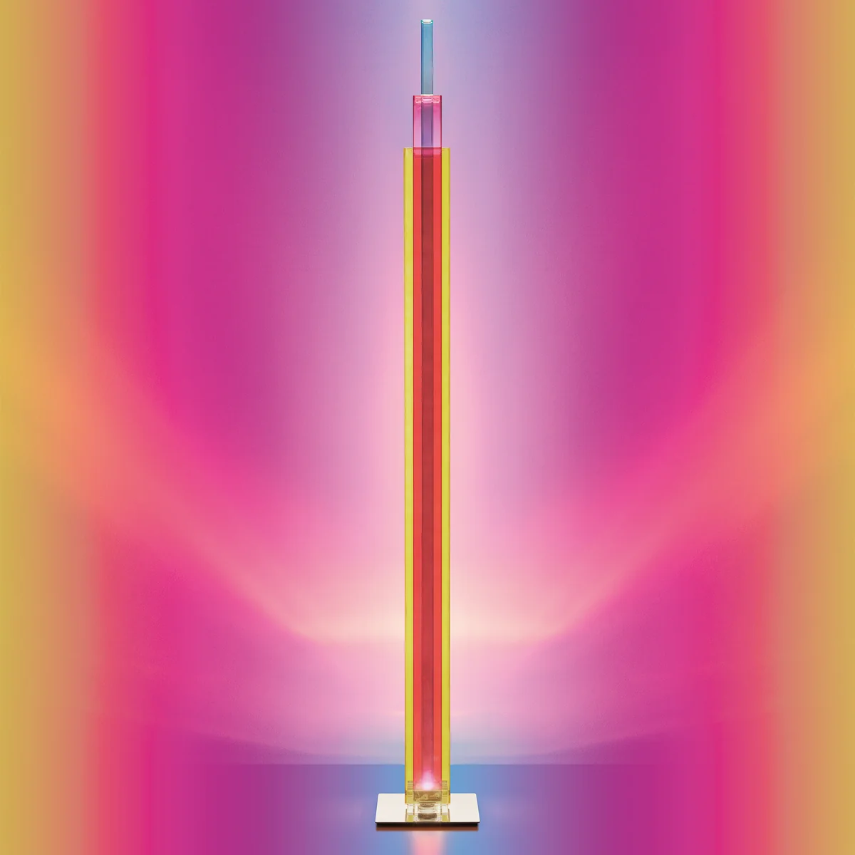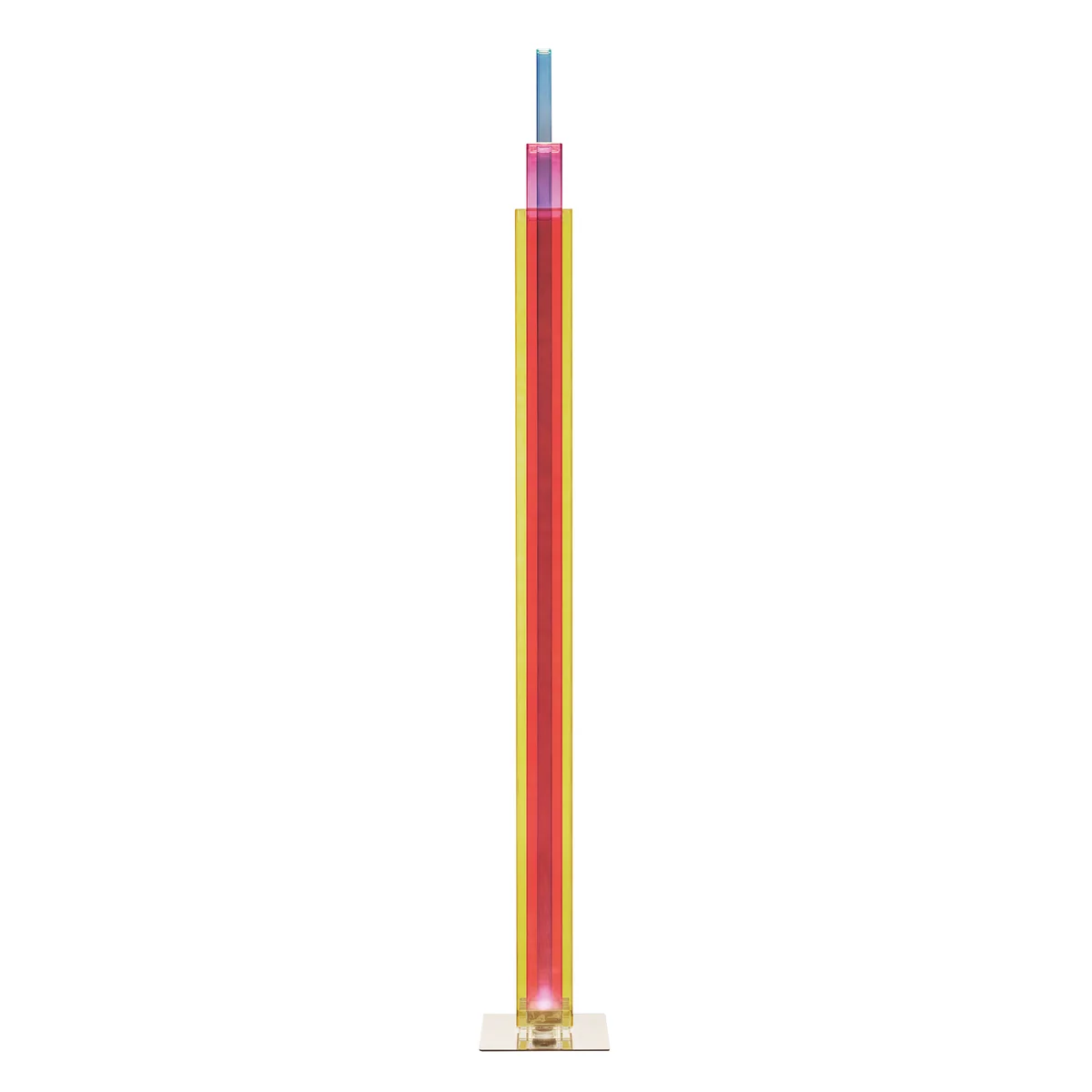 Die UpTown Stehleuchte des italienischen Herstellers Foscarini begeistert mit seinem aussergewöhnlichen Design und damit verbunden der starken Präsenz dieser Leuchte. Drei überlagernde Flachglasvolumina, welche in den Farben Gelb, Rot und Blau gefärbt sind, verleihen den Farbtönen eine besondere Dimension. UpTown ist bereits im ausgeschaltetem Zustand ein echter Blickfang, kaum ist sie jedoch eingeschaltet, erstrahlt sie den gesamten Raum. Die Stehleuchte breitet ihren Farbschimmer von den Wänden bis sogar zu den Decken Ihres Raumes aus.