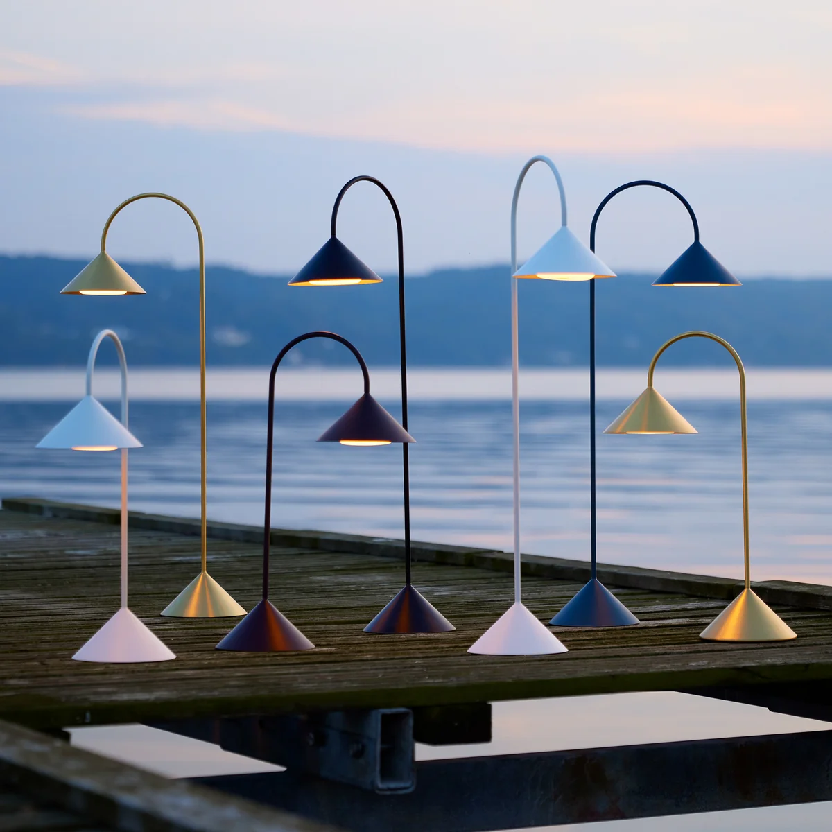 Die Grasp LED Akku-Stehleuchte von Thomas Albertsen für Frandsen sticht als bemerkenswerte Kreation hervor. Diese allwettertaugliche, tragbare Leuchte verwandelt jede Umgebung in einen Ort gemütlicher, intimer Beleuchtung. Sie verbindet nahtlos skandinavische Innovation mit zeitloser Eleganz und lässt sich von traditionellen Pendelleuchten inspirieren.