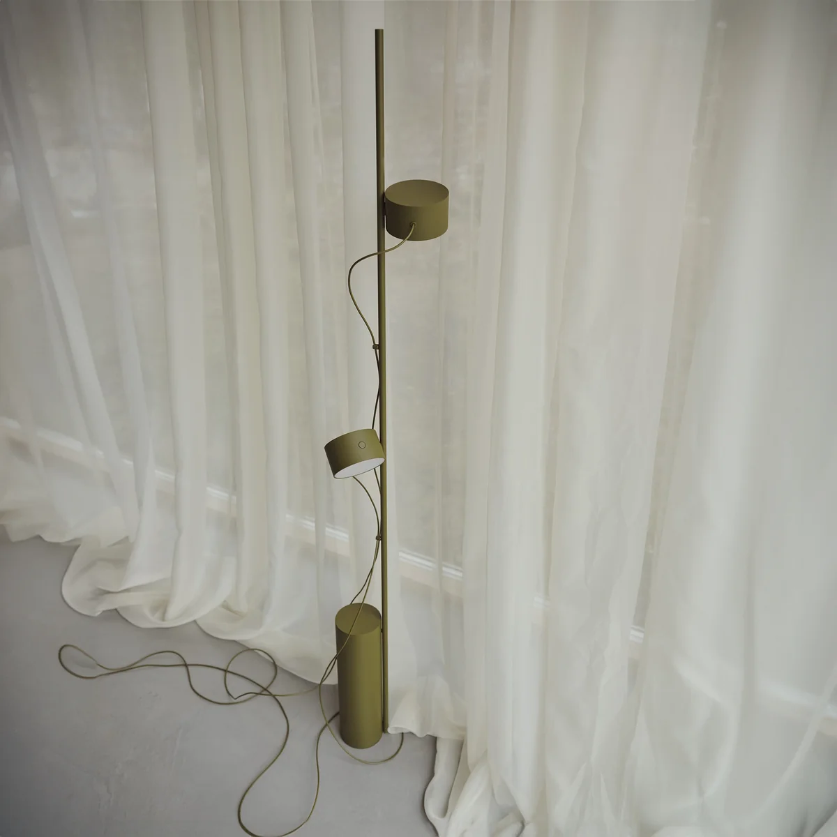 Die einzelnen Beleuchtungseinheiten der Leuchte können je nach Bedarf positioniert, gedreht und nach oben und unten gedimmt werden, wobei die grösstmögliche Flexibilität einer Magnetverbindung genutzt wird. Mit Hilfe der magnetischen Kabeltropfen können die Stränge auf dem Stab positioniert werden. Die Stehleuchte aus pulverbeschichtetem Stahl wird mit zwei Beleuchtungseinheiten geliefert.