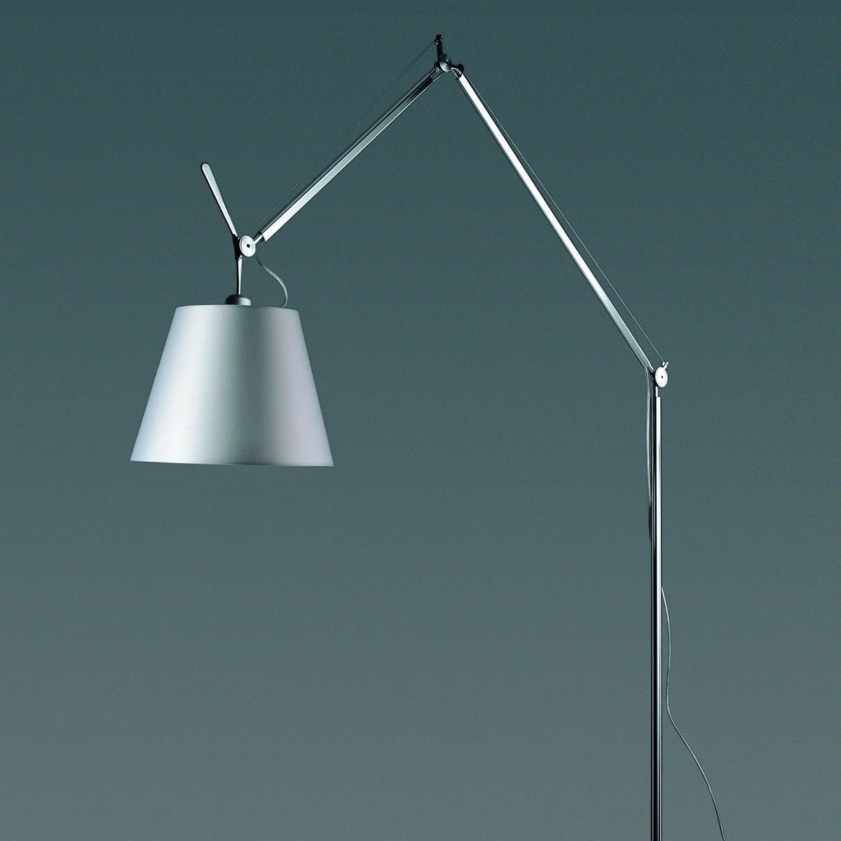 Seit 1987 produziert das italienische Unternehmen Artemide die bekannte Tolomeo Leuchte der Designer Giancarlo Fassina und Michele de Lucchi. Tolomeo Mega Terra ist eine Stehleuchte, deren grosser Leuchtenkopf durch ein Federausgleichsystem in alle Richtungen verstellt werden kann.