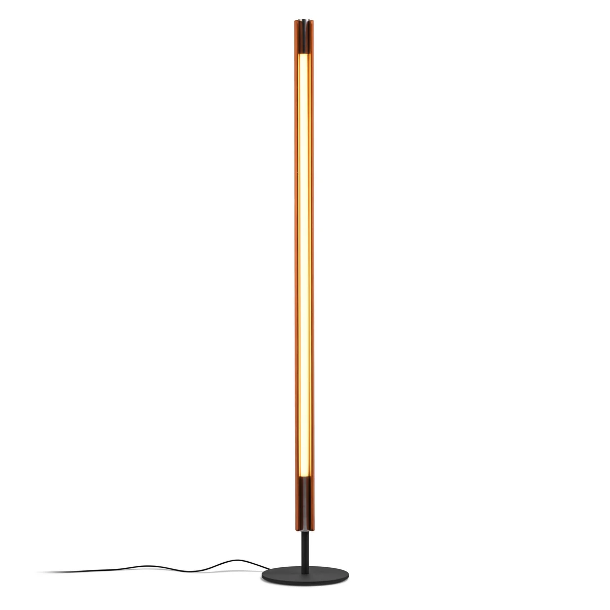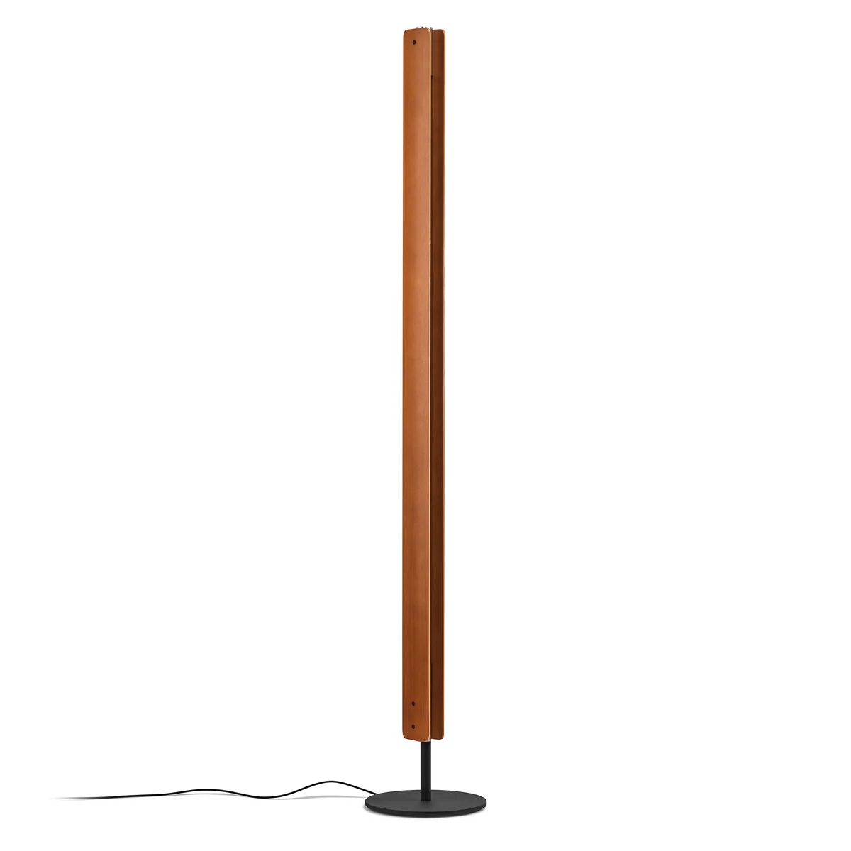 Die Seki-Han Stehleuchte, entworfen von Tobia Scarpa, ist die zeitgenössische Neuinterpretation eines Entwurfs von 1963 – ein Meisterstück, das die Wärme von Holz mit der Präzision von Licht vereint. Zwei senkrechte Flügel aus Eschenholz, verbunden durch verchromte Metallbeschläge, umschliessen eine zentrale röhrenförmige Lichtquelle, die sowohl direktes als auch indirektes Licht abstrahlt. Durch das Rotieren der Holzflügel lässt sich der Lichtaustritt individuell anpassen – symmetrisch oder asymmetrisch – und so eine einzigartige Lichtstimmung erzeugen.
