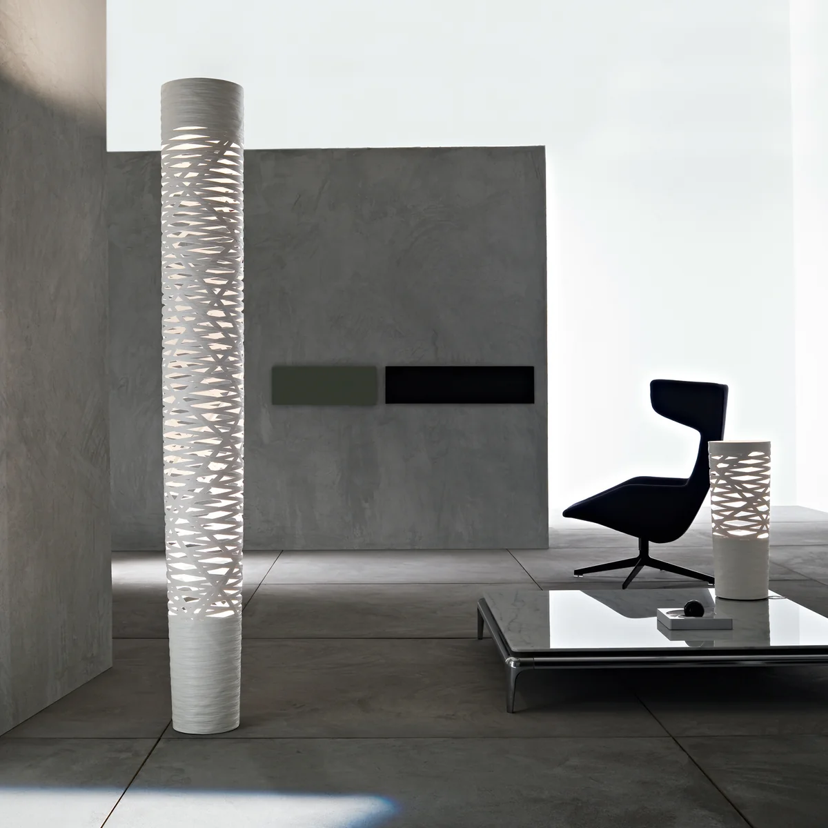 Die Tress Bodenleuchte von Foscarini ist aus einem Verbundmaterial von lackierten Glasfasern hergestellt. In zwei verschiedenen Grössen und den verschiedenen Farben: Weiss, Schwarz und Rot, erscheint die Tress Bodenleuchte entweder diskret elegant, maskulin präsent oder mit einer feurigen Ausstrahlung.