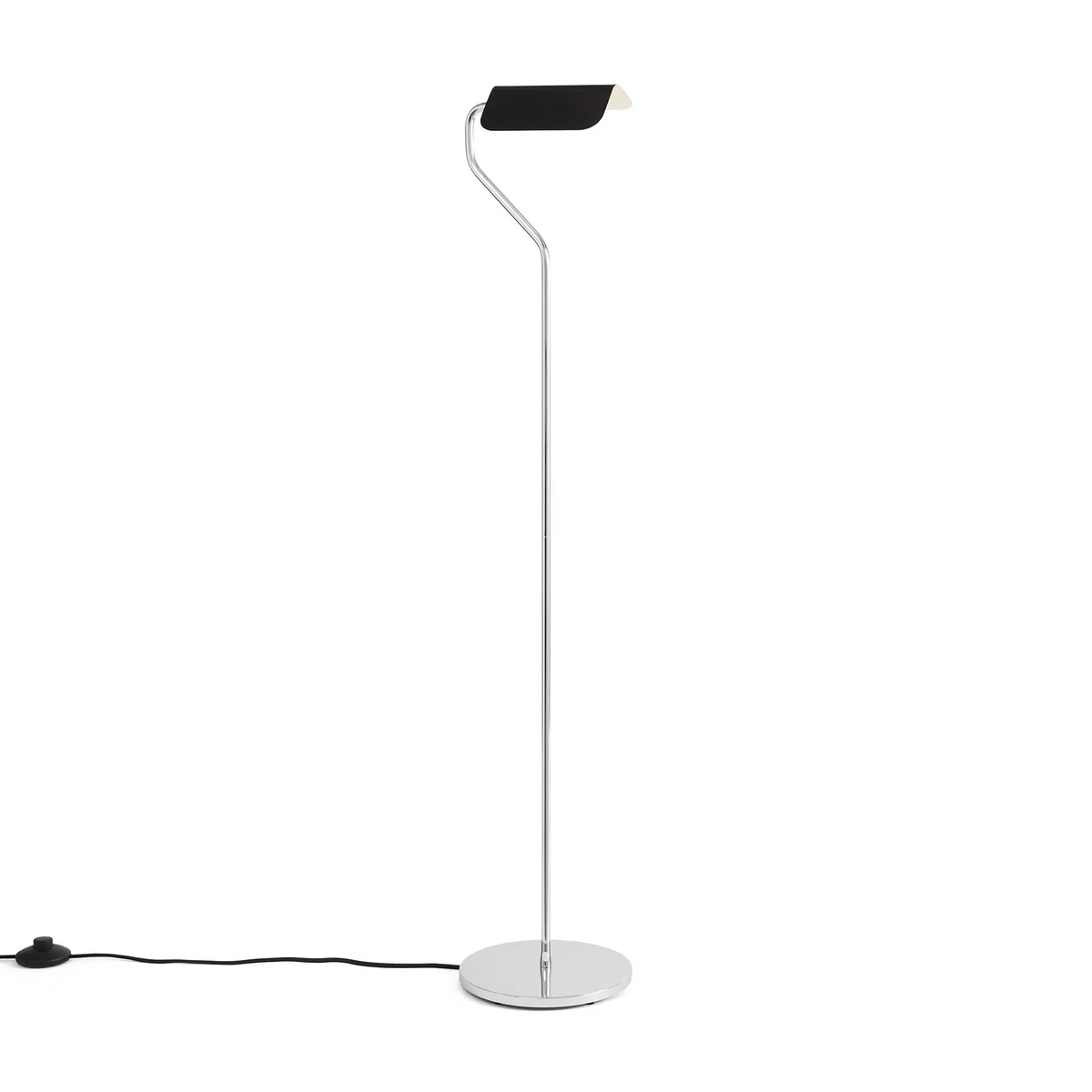 Die Apex Stehleuchte verbindet das klassische Design der Banker’s Light mit einer zeitgemässen, farbenfrohen Note. Entworfen vom britischen Designer John Tree, kombiniert sie archetypische Formen mit moderner Funktionalität. Der gefaltete Stahlschirm bildet eine markante Dachsilhouette, die nicht nur namensgebend ist, sondern auch einen spannenden Kontrast zur verchromten Basis schafft. Dank ihres drehbaren Schirms, der sich um 360 Grad rotieren lässt, ermöglicht die Apex Stehleuchte eine flexible Lichtausrichtung – von gezieltem Leselicht bis hin zu sanfter Umgebungsbeleuchtung. Mit ihrer klaren Ästhetik und vielseitigen Anwendungsmöglichkeiten ist sie sowohl eine funktionale als auch dekorative Ergänzung für unterschiedlichste Räume.