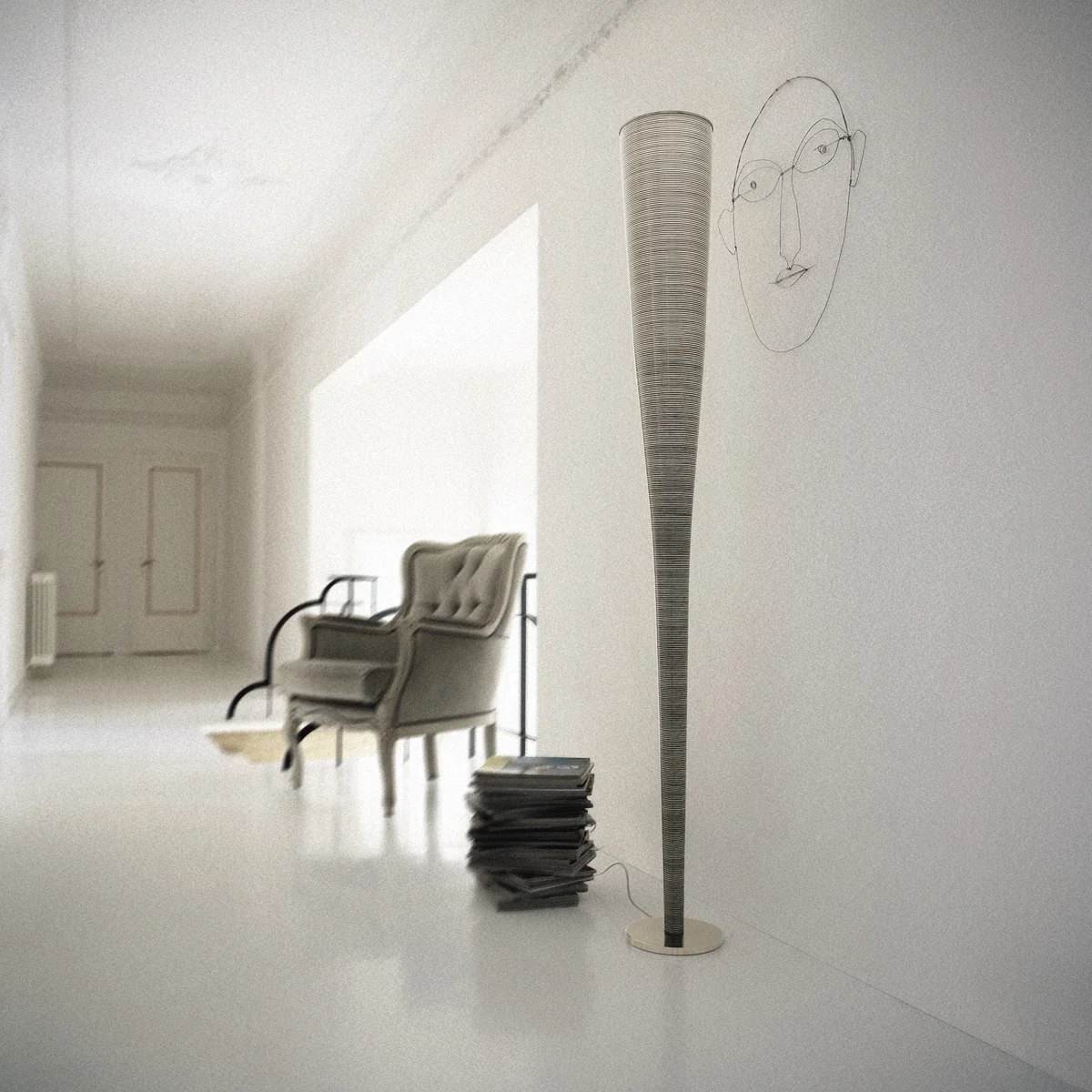 Die Mite LED Stehleuchte von Foscarini erinnert mit ihrer aussergewöhnlichen Gestalt eher an ein künstlerisches Objekt als an eine klassische Leuchte. Für den Entwurf wurde der verantwortliche Designer Marc Sander bereits im Jahr 2000 mit dem renommierten Compasso d'Oro-ADI ausgezeichnet.