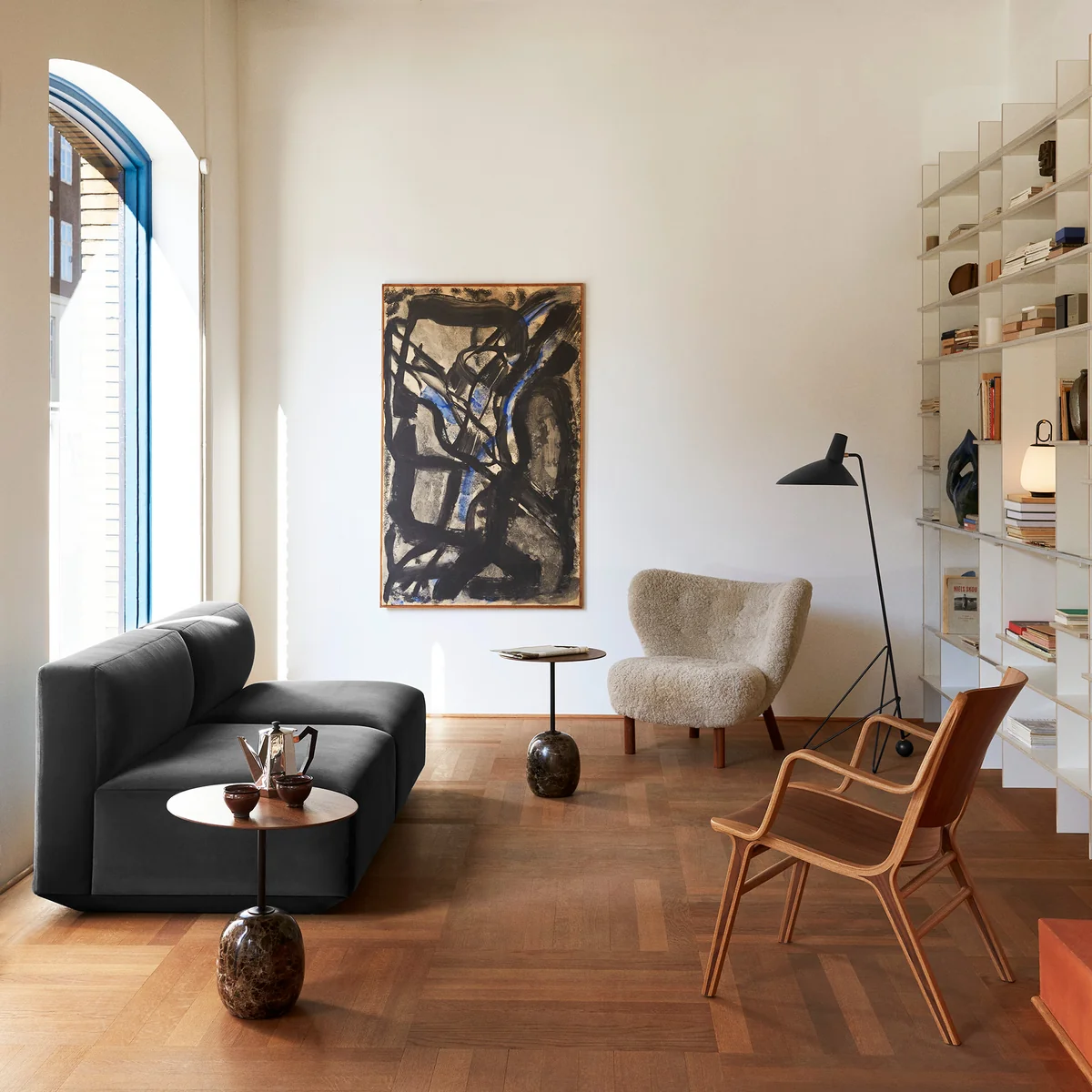 Die Tripod HM8 Stehleuchte von &Tradition spiegelt den klaren Minimalismus von Hvidt & Mølgaard wider. Die Stehleuchte aus lackiertem Aluminium und Stahl mit Messingdetails schafft ein feines Gleichgewicht zwischen der strengen Einfachheit ihres Designs und der Weichheit, die durch die geschwungenen Kanten ihres dreibeinigem Gestells erzeugt wird. Obwohl die Leuchte bereits 1953 entworfen wurde, wird sie nun zum ersten Mal von &Tradition lanciert.