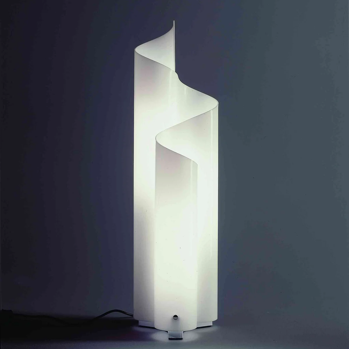 Die Tischleuchte Mezzachimera ist der kleine Bruder der Chimera Stehleuchte. Sie wurde 1969 von Vico Magistretti für den italienischen Leuchtenhersteller Artemide entworfen. Die elegante Wellenform der Leuchte wird von dem lichtdurchlässigen Weiss des Körpers unterstrichen.