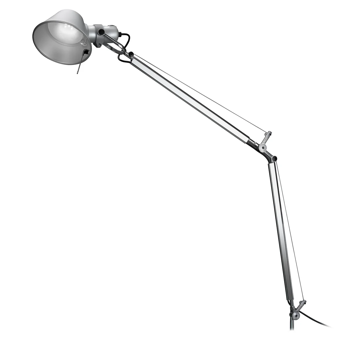 Das hoch bewegliche Gestell, die schlichte Alu-Optik und der hutförmige Schirm sind die Kennzeichen der Tolomeo Leuchte, deren einfache und archetypische Form vielen Hersteller-Unternehmen und Designern zur Inspiration ähnlicher Leuchten diente.