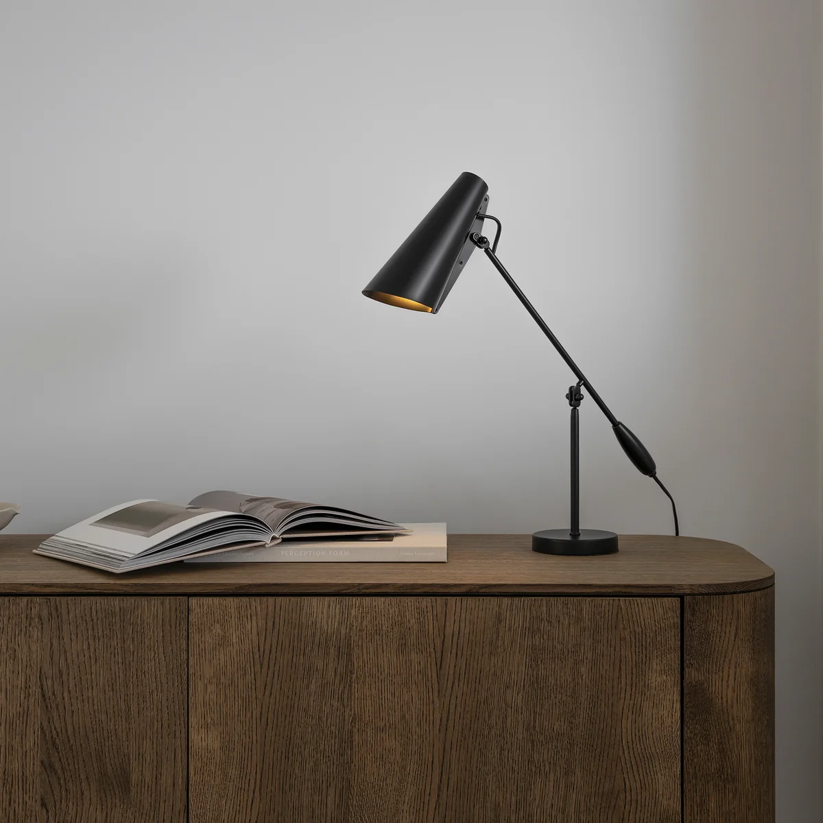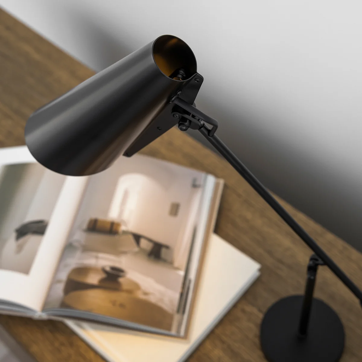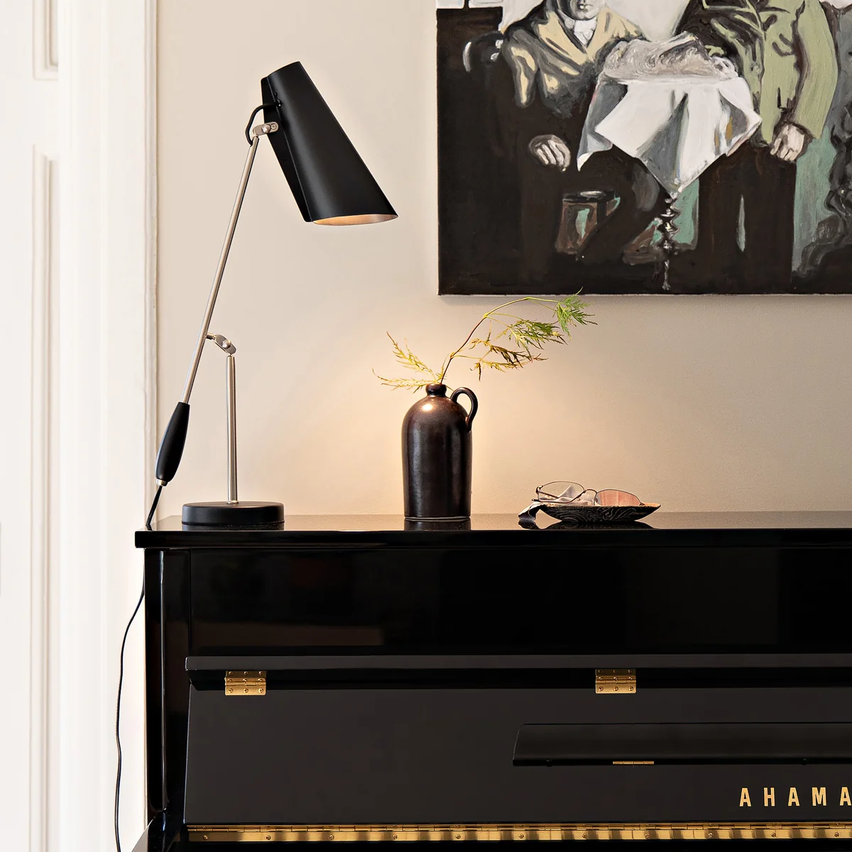 Erhältlich ist die Birdy Tischleuchte in verschiedenfarbigen Lackierungen sowie Metallgestellen in Metallic, Messing oder Schwarz.