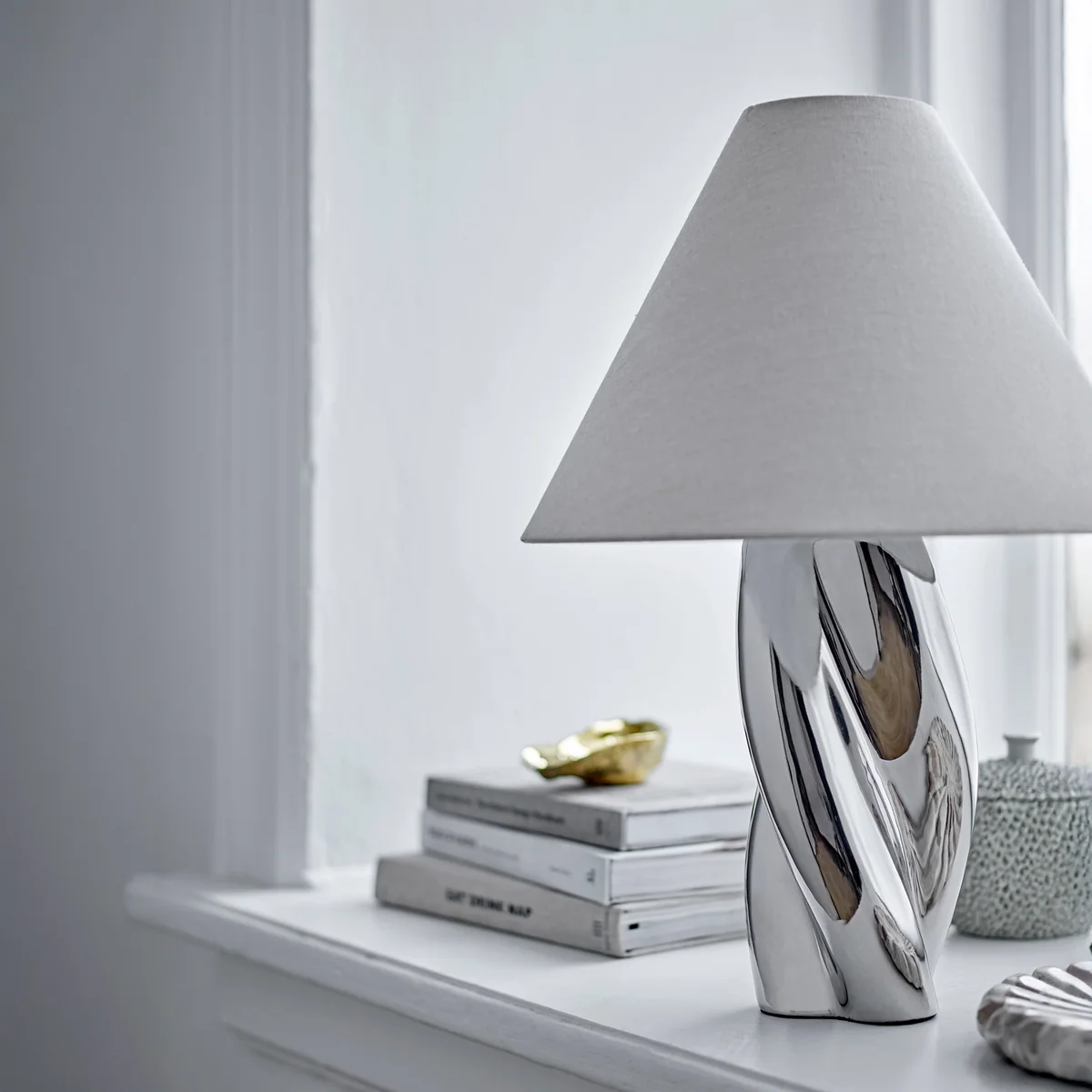 Die Silva Tischleuchte von Bloomingville kombiniert einen ausdrucksstarken Sockel mit einem klassischen, hellen Schirm. Die glänzende Oberfläche trifft auf natürliche Textur und macht die Leuchte zu einem dekorativen Akzent für Sideboards, Nachttische oder Kommoden.