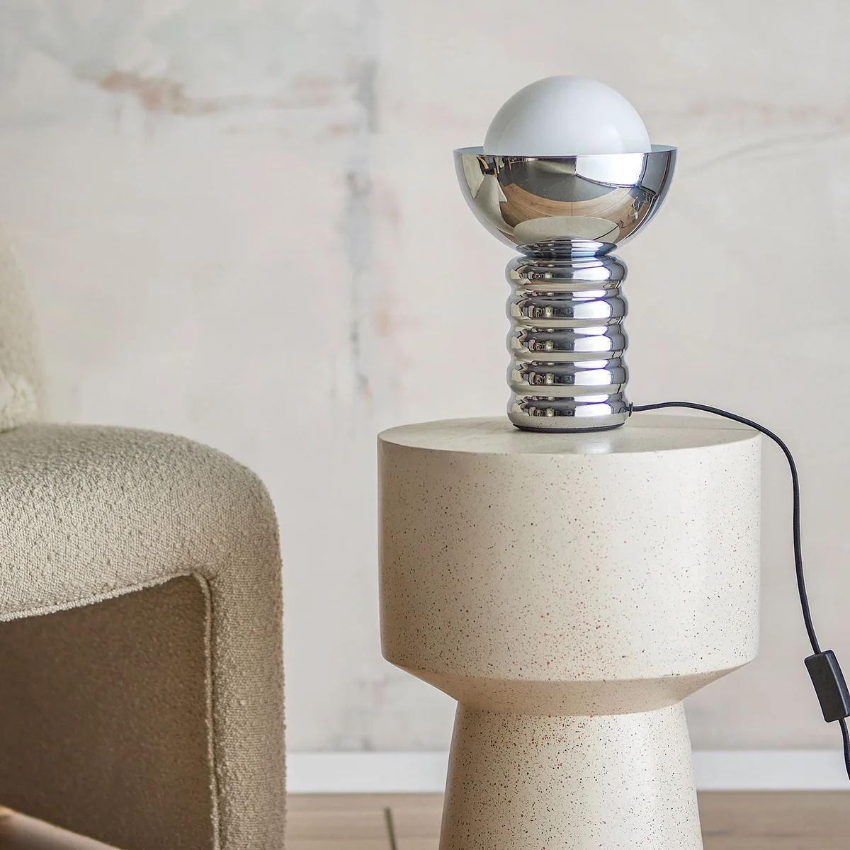 Die Spike Tischleuchte von Bloomingville beeindruckt mit ihrem blasenförmigen Design und der glänzenden Chromoberfläche. Sie ist nicht nur eine funktionale Lichtquelle, sondern auch ein dekoratives Highlight, das jedem Raum einen modernen und eleganten Akzent verleiht. Ideal für das Fensterbrett, den Nachttisch oder den Schreibtisch.
