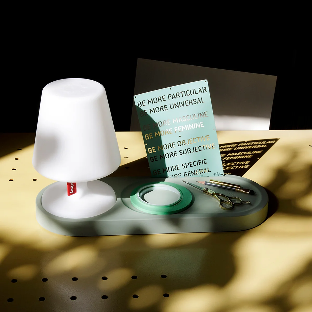 Die Edison the Petit Residence Ablagebord LED Leuchte von Fatboy bietet alles was man brauchen, um stilvoll und praktisch zu leben! Edison the Petit Residence ist ein Regal, welches speziell für den Edison the Petit Tischleuchte entwickelt wurde. Es bietet nicht nur Platz für die ikonische Leuchte, sondern auch für Schlüssel, Post und andere Kleinigkeiten, die im Alltag Ordnung brauchen.