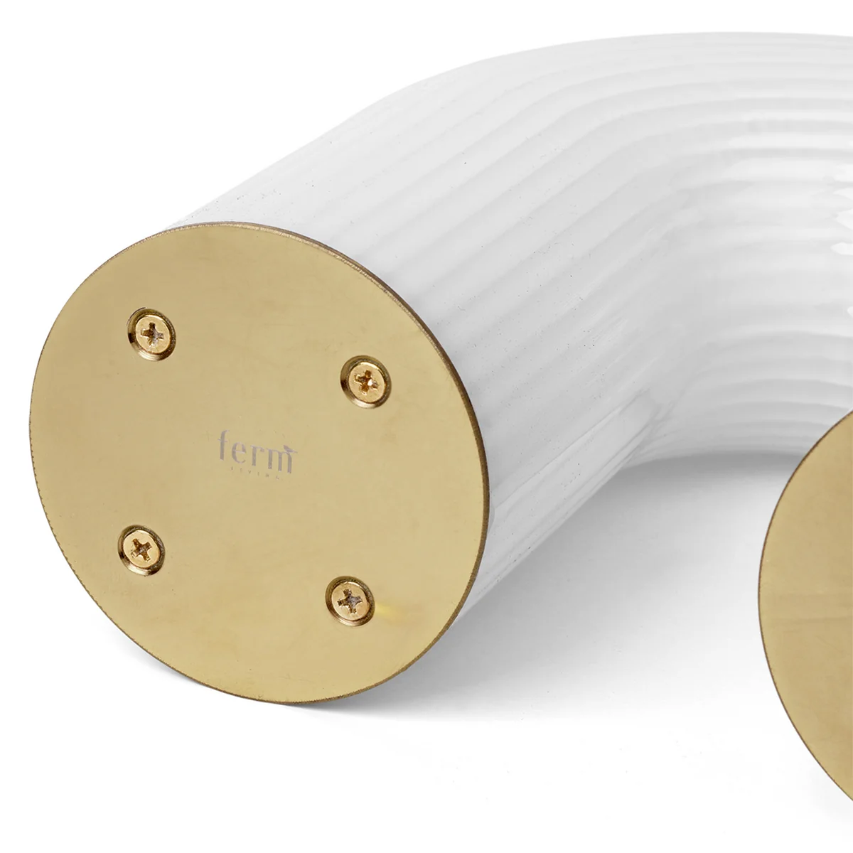 Die Vuelta Tischleuchte von Ferm Living zeichnet sich durch ihre einzigartige Form aus, welche die Leuchte im ausgeschalteten Zustand nicht auf den ersten Blick als solche erkennen lässt. Die Silhouette der Tischleuchte gleicht einem Bogen und erinnert an antike, skulpturale Säulen. Gefertigt ist die Vuelta Tischleuchte aus geriffeltem Opalglas, das für ein extravagantes Spiel aus Licht und Schatten sorgt.