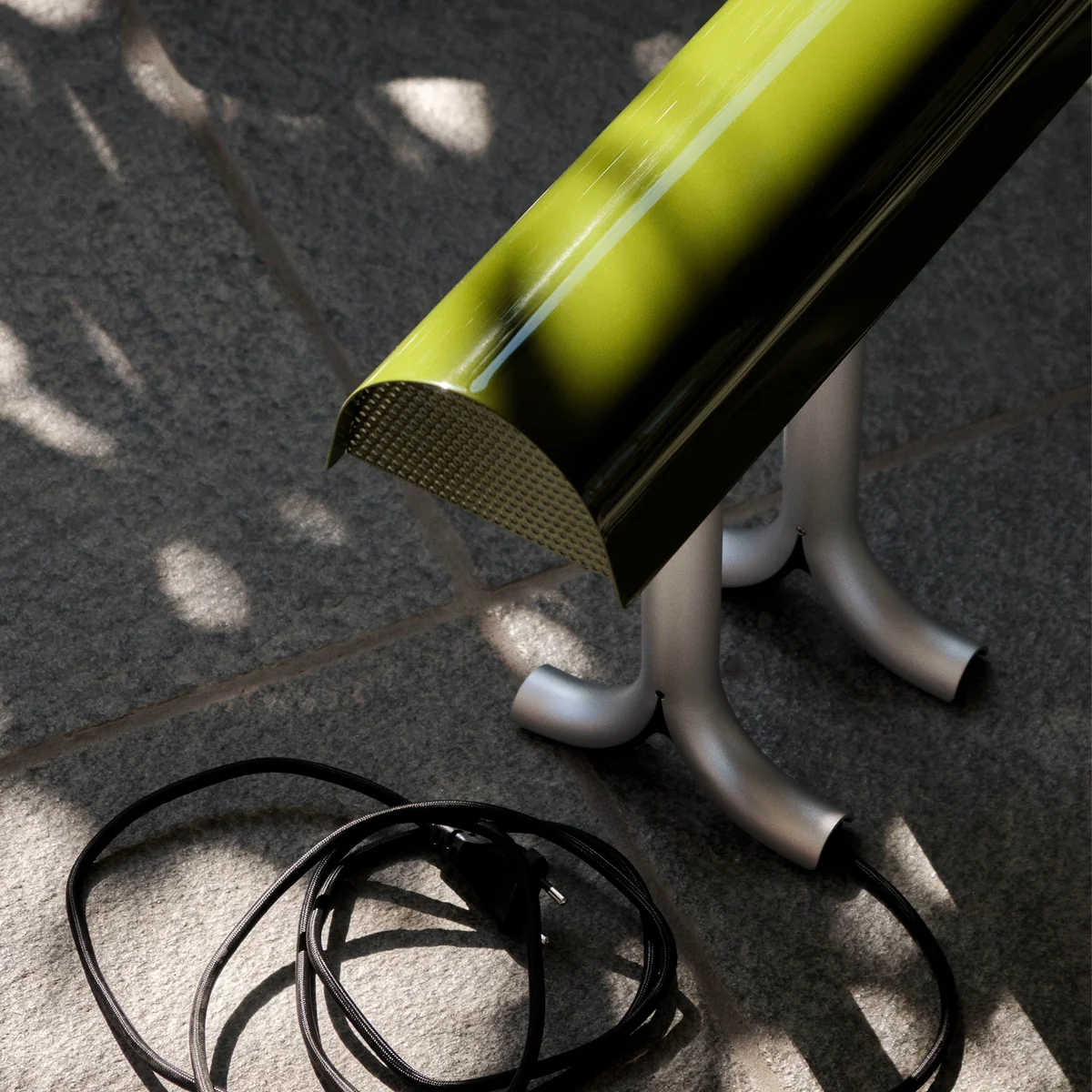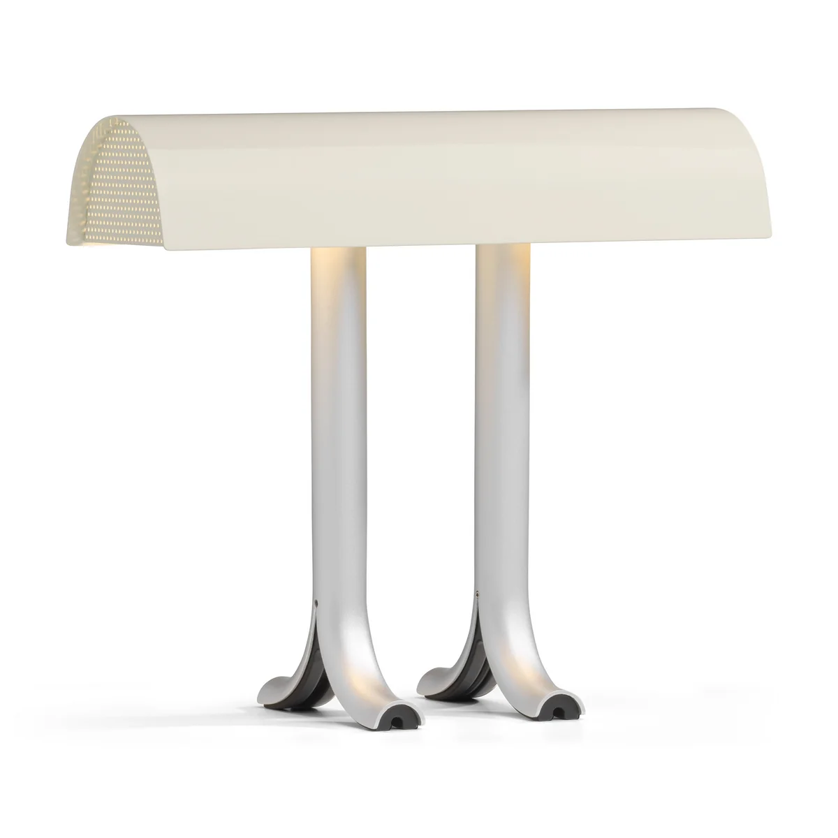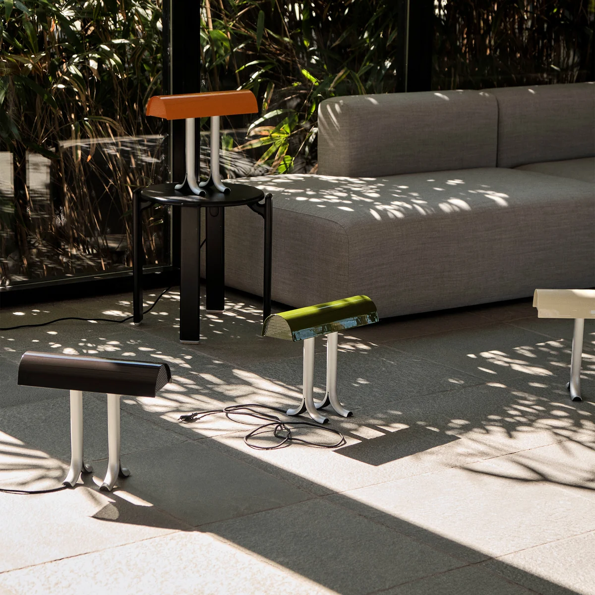 Die Anagram Tischleuchte des Designers Sam Weller für den dänischen Hersteller HAY verbindet Funktionalität mit einem überaus raffinierten, visuellen Reiz. Die robuste Konstruktion, bestehend aus einem grosszügig geschwungenen Schirm sitzt auf zwei geteilten, eloxierten Aluminiumbeinen. Die kontrastierenden Elemente der Anagram Leuchte sorgen für einen originellen, zeitgenössischen Touch. Der Schirm wird aus Stahlblech gefertigt. Die Rohrbeine sind für eine lange Lebensdauer ausgelegt und schaffen ein solides Design. Die Tischleuchte ist mit einem Kippschalter ausgestattet und kann mit handelsüblichen Glühbirnen kombiniert werden. Es entsteht ein stimmungsvolles Downlight, welches wunderbar auf Sideboards oder einer Fensterbank platziert werden kann. Erhältlich in unterschiedlichen Farben.
