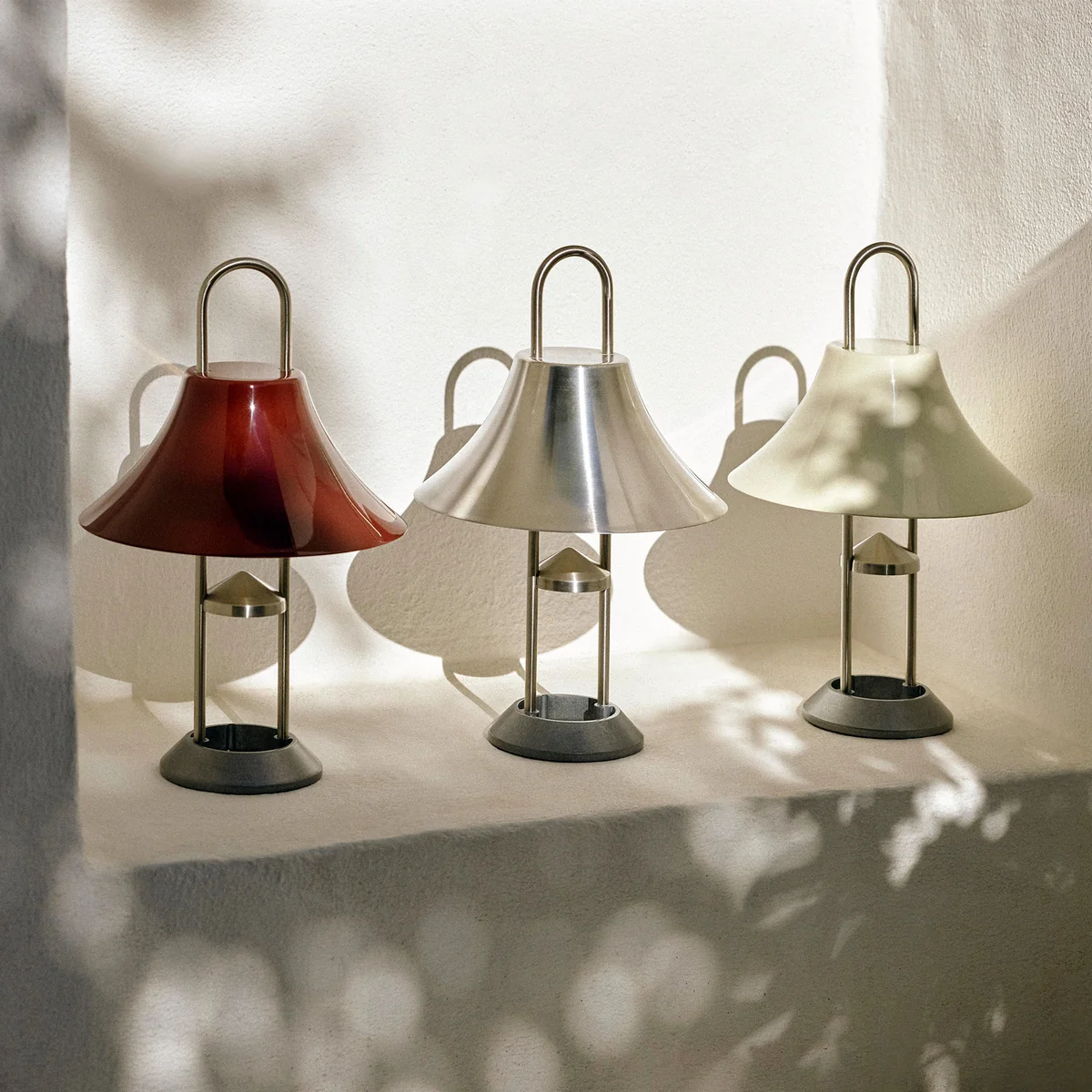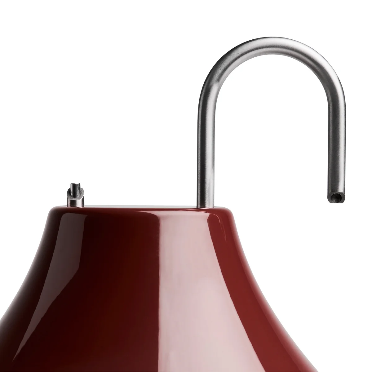 Die Mousqueton Portable LED Leuchte von Inga Sempé für den dänischen Hersteller HAY ist eine überaus ästhetische Outdoor-Leuchte. Technische Elemente sind in einem dekorativen Design integriert. So kann der Karabinerhaken der Leuchte bei Bedarf an einem Ast oder Seil aufgehängt werden. Der Körper der Mousqueton-Leuchte wird aus wetterfestem Edelstahl und einer Zinklegierung gefertigt. Der Schirm ist in einer Vielzahl von Farben erhältlich. Die Mousqueton Portable LED Leuchte kann je nach Wunsch sowohl im Innen- als auch Aussenbereich verwendet werden.