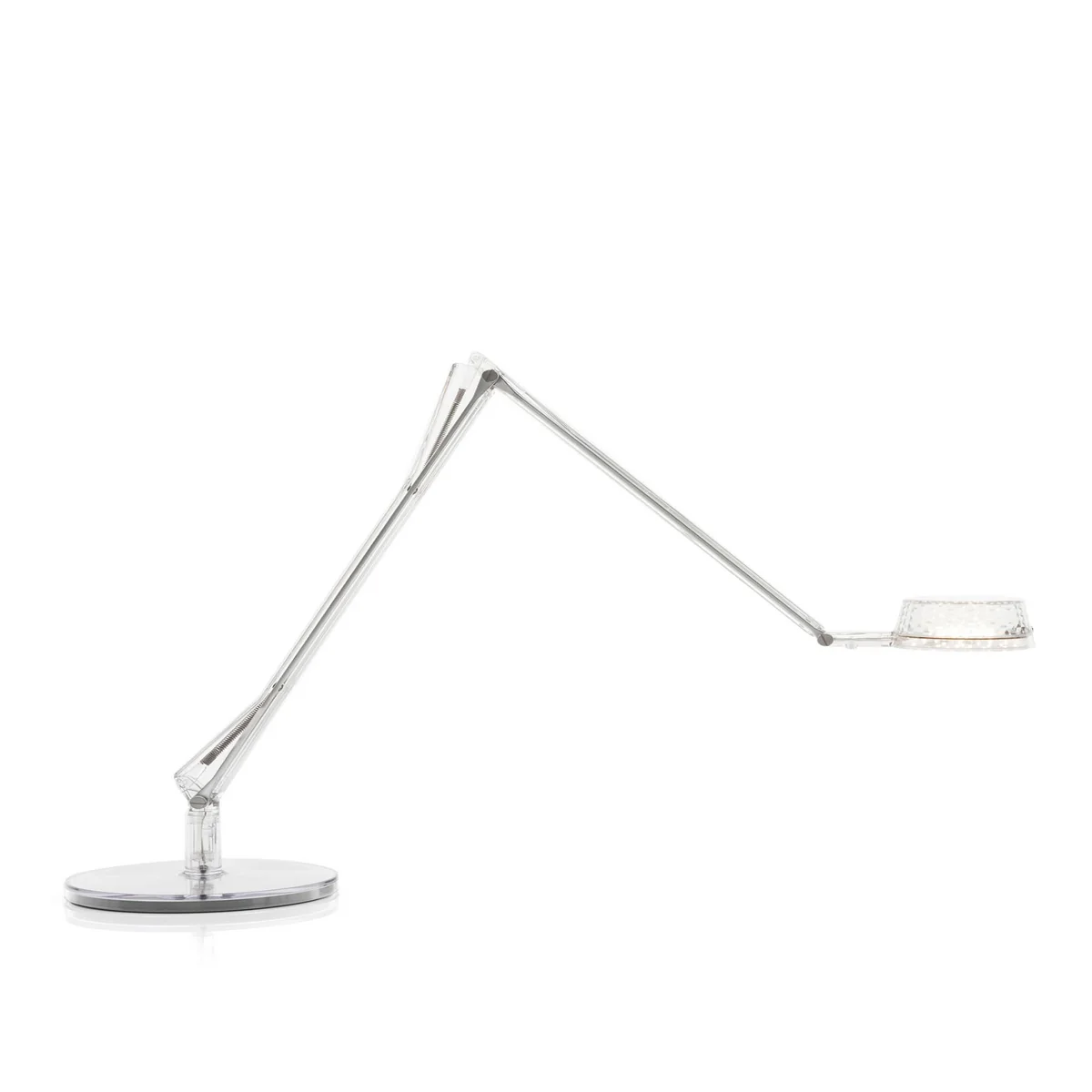 Die Dec Variante der Leuchte zeichnet sich durch das facettierte Dekor des kegelförmigen Diffusors aus. Der Lichtstrahl ist breiter und verleiht dadurch ein angenehmes Licht, womit die Kartell-Leuchte ideal für den Wohnbereich geeignet ist.