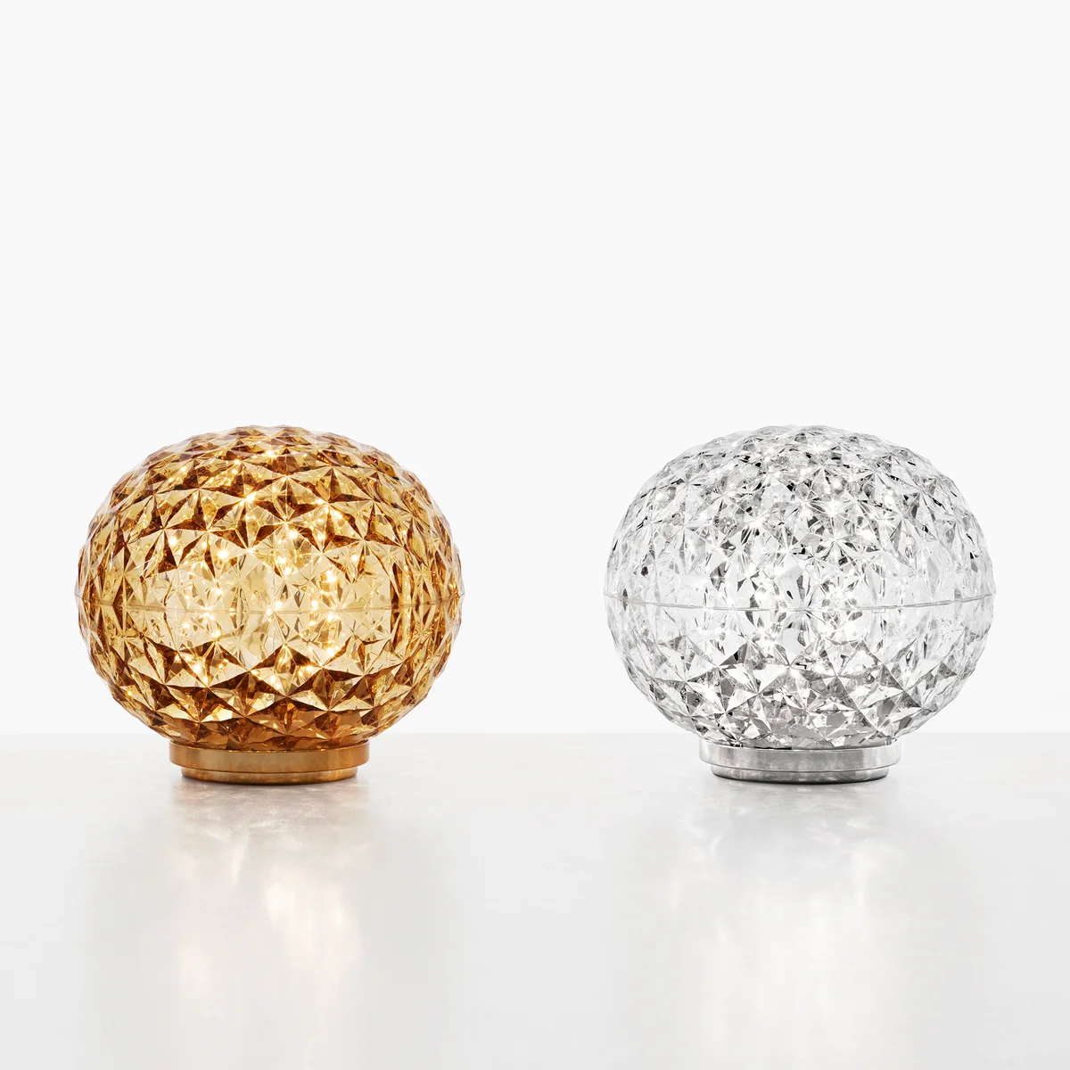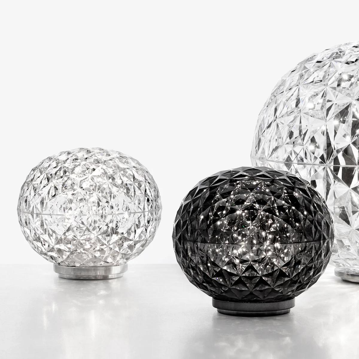 Die Mini Planet LED Akkuleuchte von Kartell erinnert mit ihrer runden Form an einen kleinen Planeten, der sich in einem aussergewöhnlichen Design zeigt. Die kleine Leuchte schafft eine grossartige Atmosphäre im Raum und lässt sich durch den Betrieb mit einem wiederaufladbarem Akku flexibel überall platzieren. Die verschiedenen Stufen der dimmbaren Leuchte lassen sich einfach durch Berühren der Lampe in drei Stufen regeln.